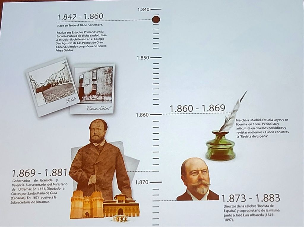 En el período de 1969 a 1881, es nombrado Gobernador de Granada y Valencia. Subsecretario del Ministerio de Ultramar. En 1871 es Diputado a Cortes por Santa María de Guía (Gran Canaria), regresando en 1874 a la Subsecretaria de Ultramar. Director de la célebre “Revista de España” y copropietario de la misma junto a José Luis Albareda (1825-1897). En 1883 es Vicepresidente del Congreso de los Diputados y a su gestión política se debe la construcción de l Puerto de La Luz, verdadero motor económico del Archipiélago Canario.