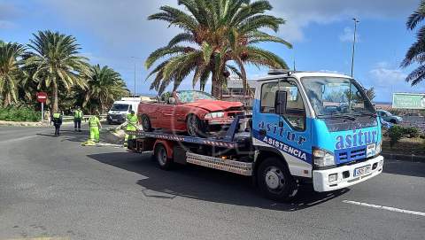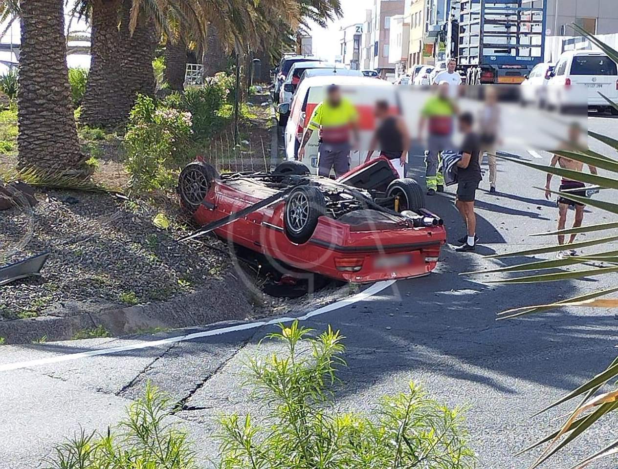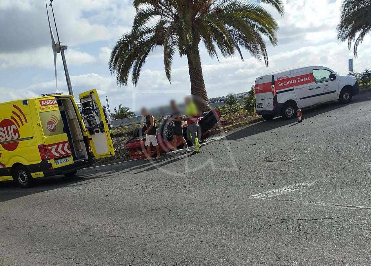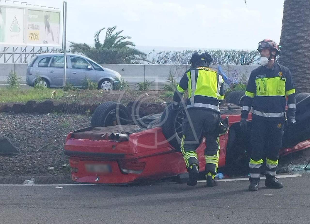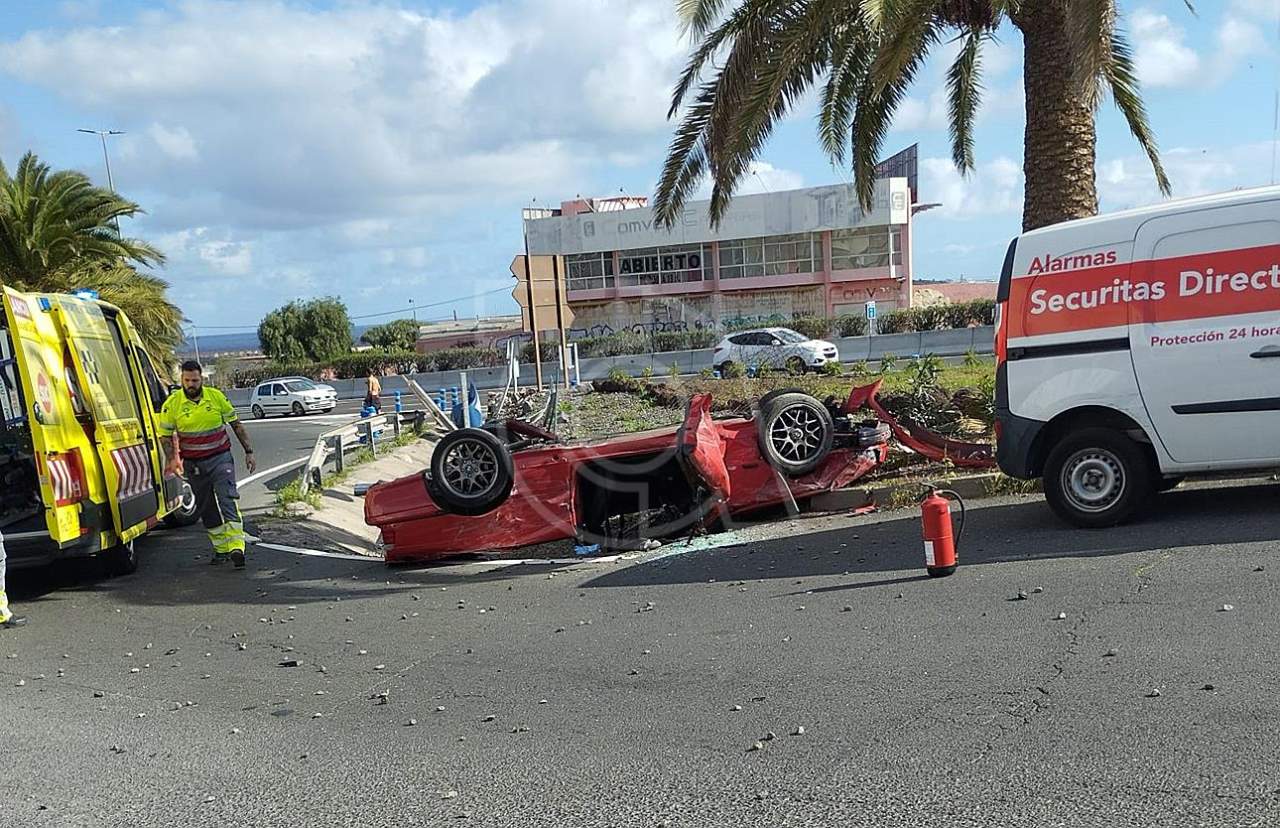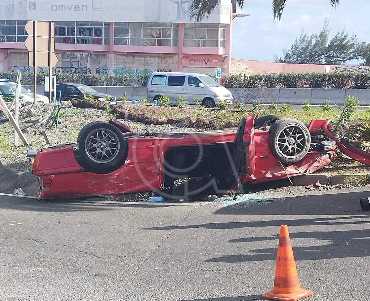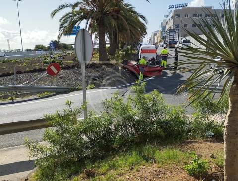Un vehículo ha volcado en la mañana de este sábado en la entrada al barrio de Las Huesas desde la GC-1, en dirección hacia el sur, pasadas las 11.15 horas.