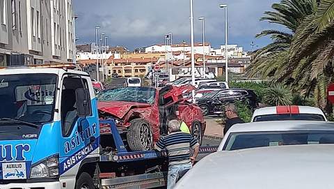 Alrededor de una hora después del vuelco ha tenido lugar un nuevo accidente a escasos metros. En esta ocasión, un vehículo impactó con diferentes señales de tráfico en la GC-1, a la altura del puente de Las Huesas.