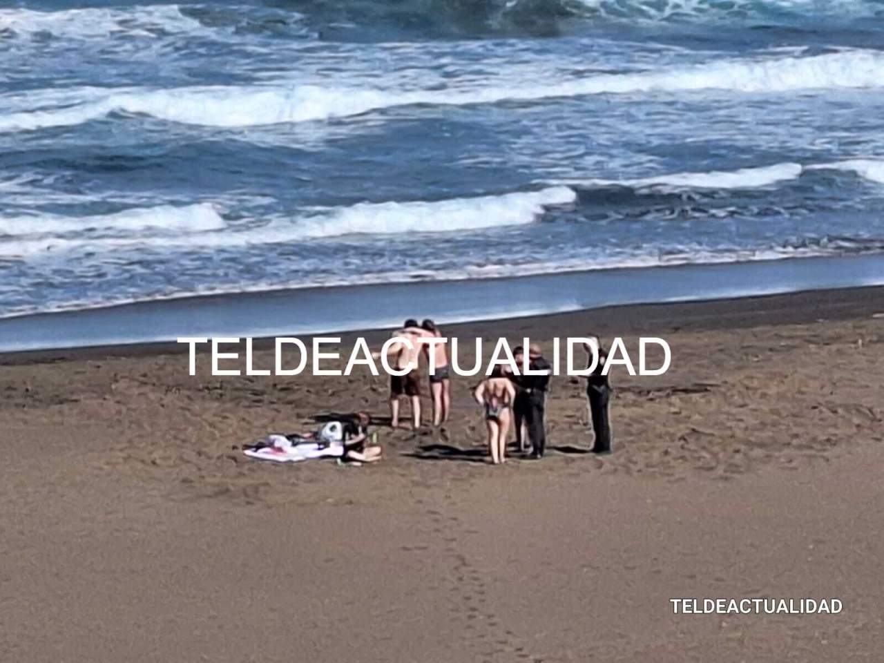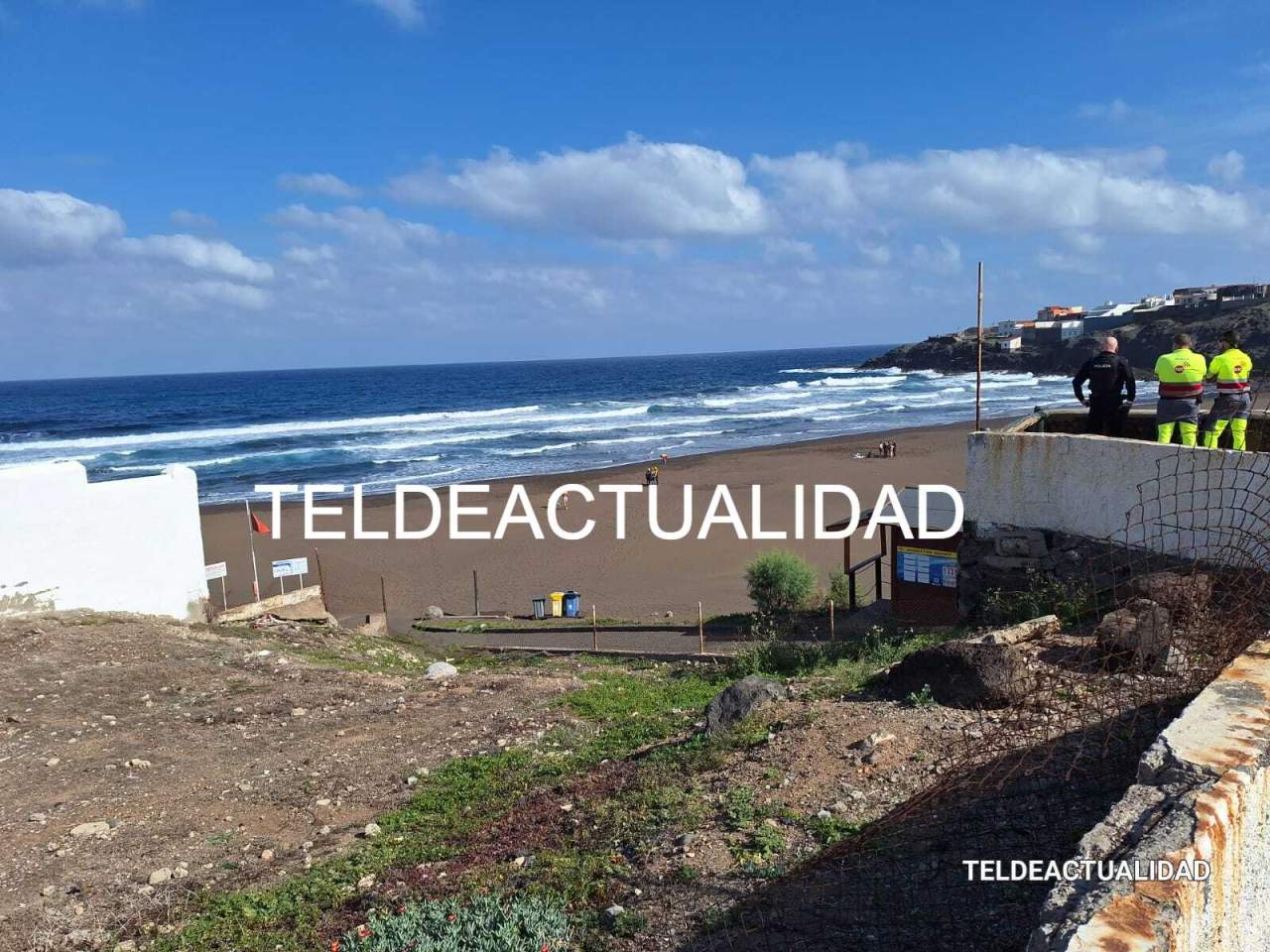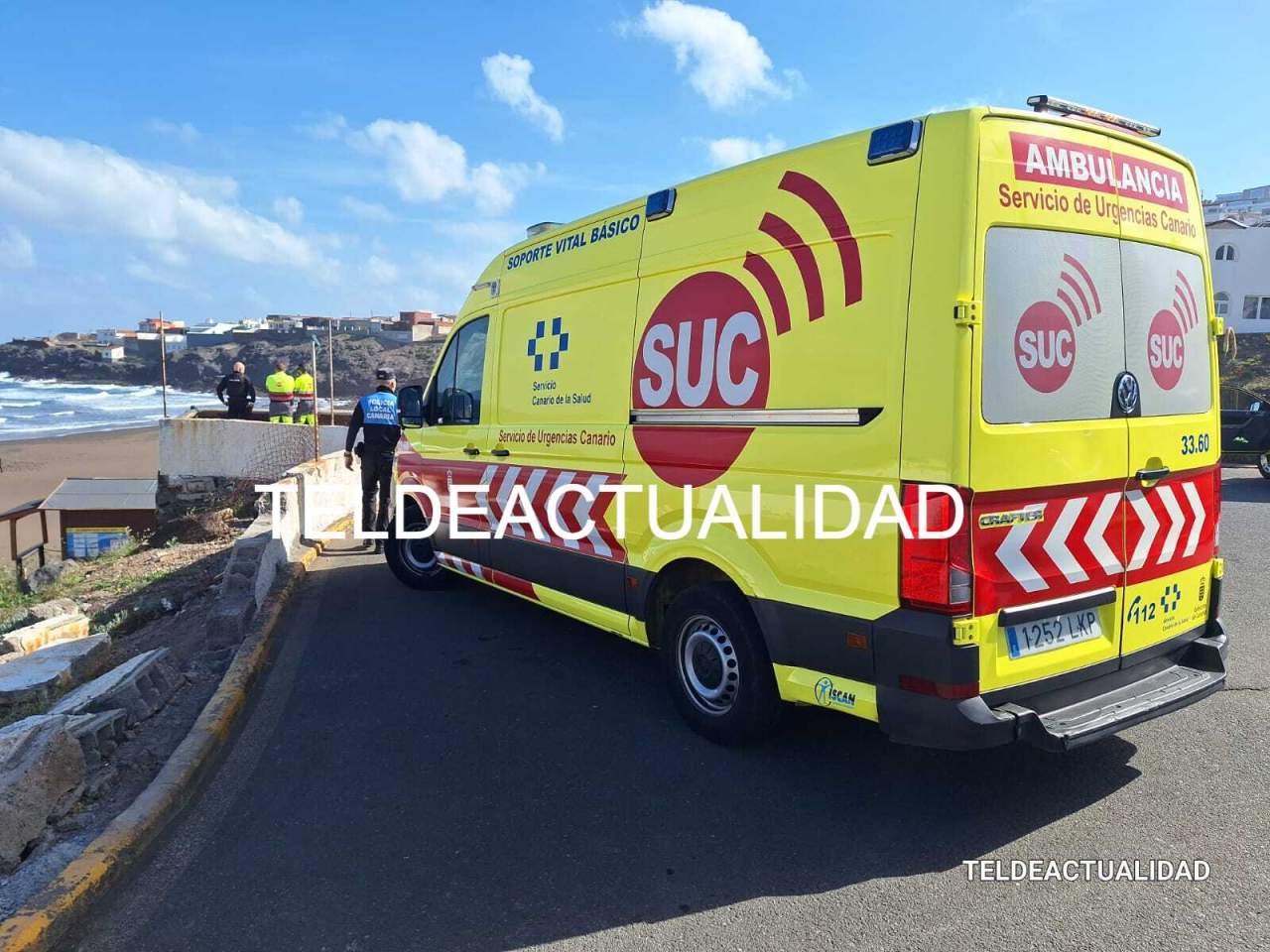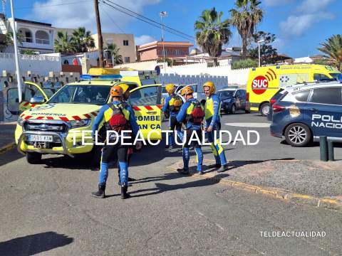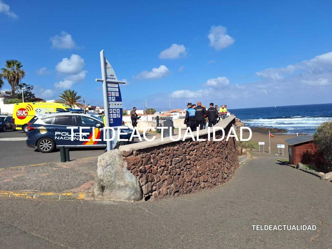 Hasta la cala teldense se desplazaron bomberos del Consorcio de Emergencias de Gran Canaria desde el parque de Telde, socorristas de Proactiva, una ambulancia de soporte vital básico del Servicio de Urgencias Canario (SUC) y agentes de la Policía Local y de la Policía Nacional.
