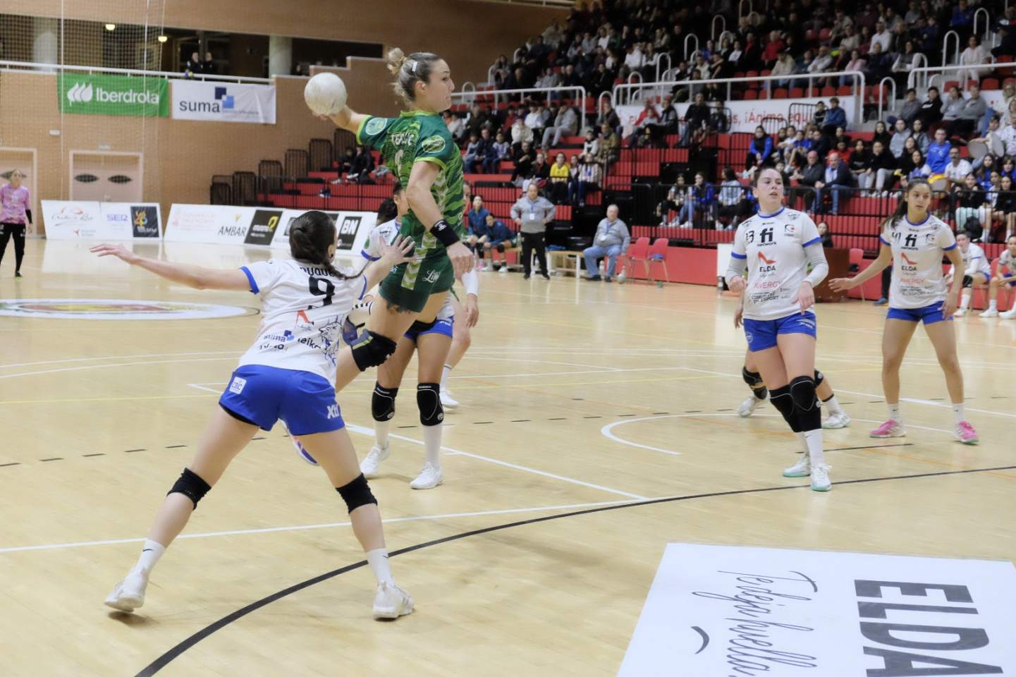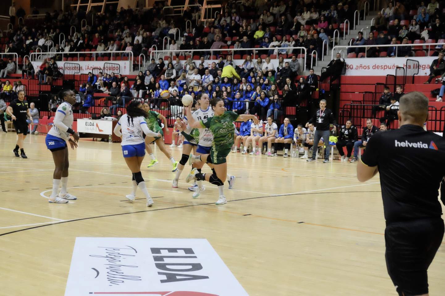 A dos minutos para el descanso, el Elda alcanzaba una ventaja máxima de siete goles (13-6). Sin embargo, el equipo no bajó los brazos en ningún momento. Un parcial de 0-2 y una parada de Lulu Guerra sobre la bocina ponían un 13-8 al descanso que amortiguaba el golpe y, al mismo tiempo, abría una pequeñísima rendija a la esperanza.
