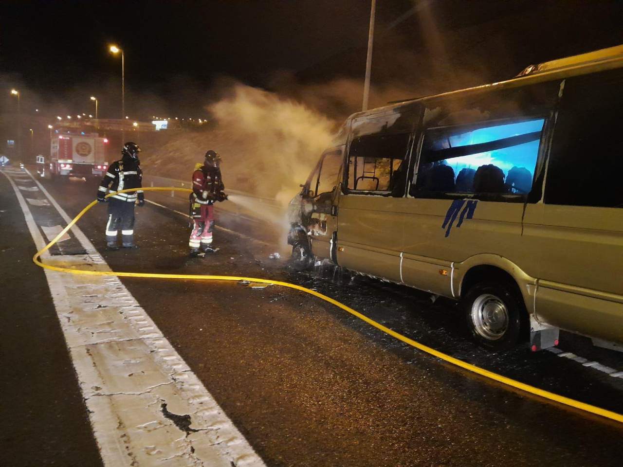 Un microbús ha sufrido a primera hora de esta mañana un incendio en la autovía GC-1, en dirección sur, precisamente en la zona del acceso al Valle de Jinámar, a la altura del CC El Mirador..