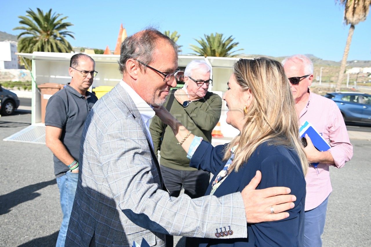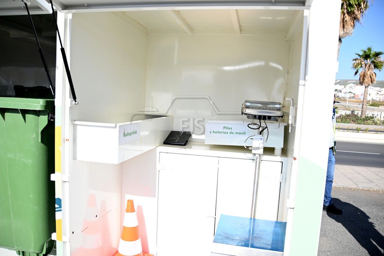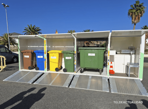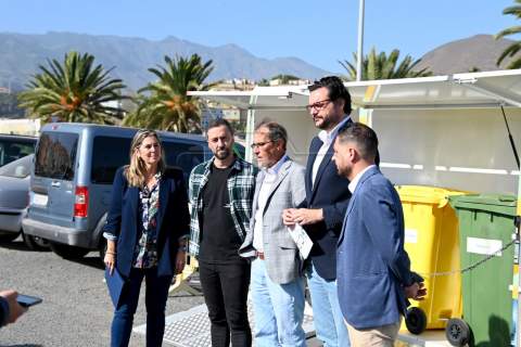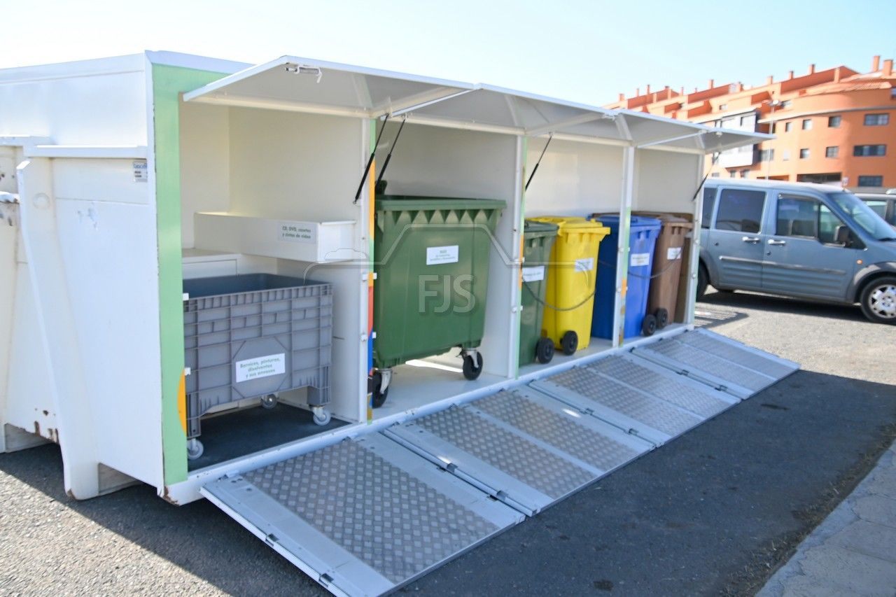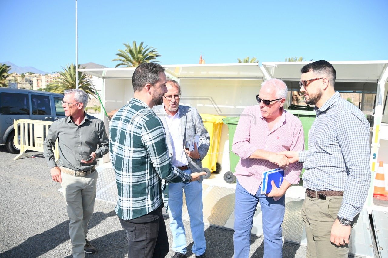 El dispositivo, un contenedor que en su interior dispone de recipientes para las diferentes fracciones de reciclaje, fue presentado este miércoles en un acto al que asistieron el alcalde Juan Antonio Peña, el director insular de Medio Ambiente, Manuel Amador, la concejala de Limpieza Viaria y Recogida de Residuos, María González Calderín, el vicealcalde Sergio Ramos y el concejal de Urbanismo, Juan Francisco Jiménez.