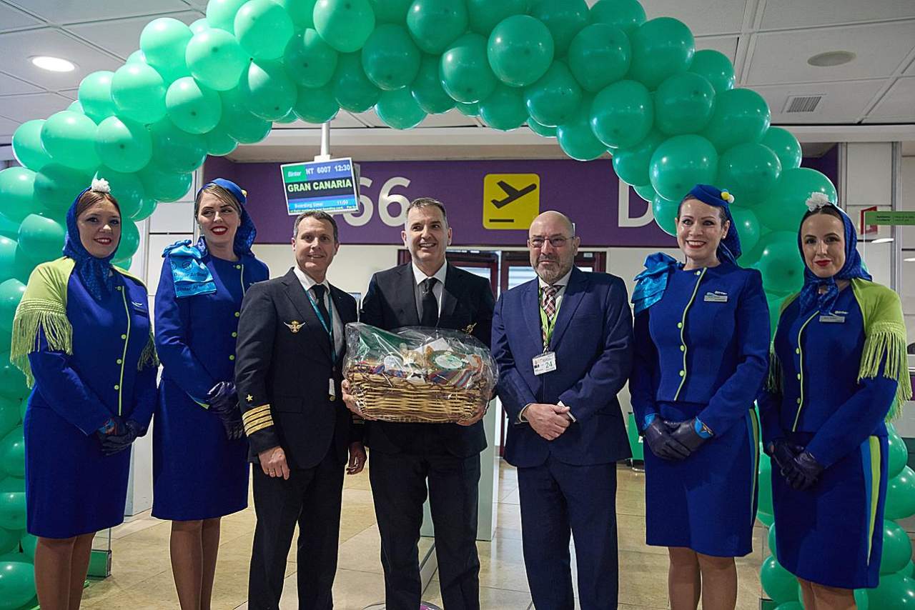 A la inauguración del vuelo desde Gran Canaria asistieron la presidenta del Parlamento de Canarias, Astrid Pérez; la subdelegada del Gobierno, Teresa Mayans; el consejero de Educación, Poli Suárez; la consejera de Turismo, Jessica de León; el director del aeropuerto, Julio Mosquera; el exconsejero de Obras Públicas, Sebastián Franquis, y, por parte de la aerolínea, el coordinador general, Santiago Guerra, y la consejera Ana Suárez, junto a su directora de Comunicación, Noelia Curbelo.