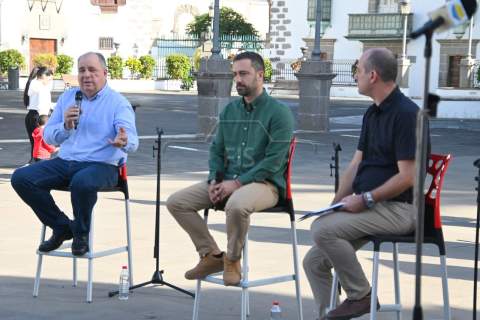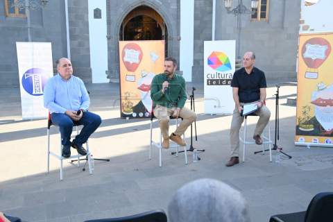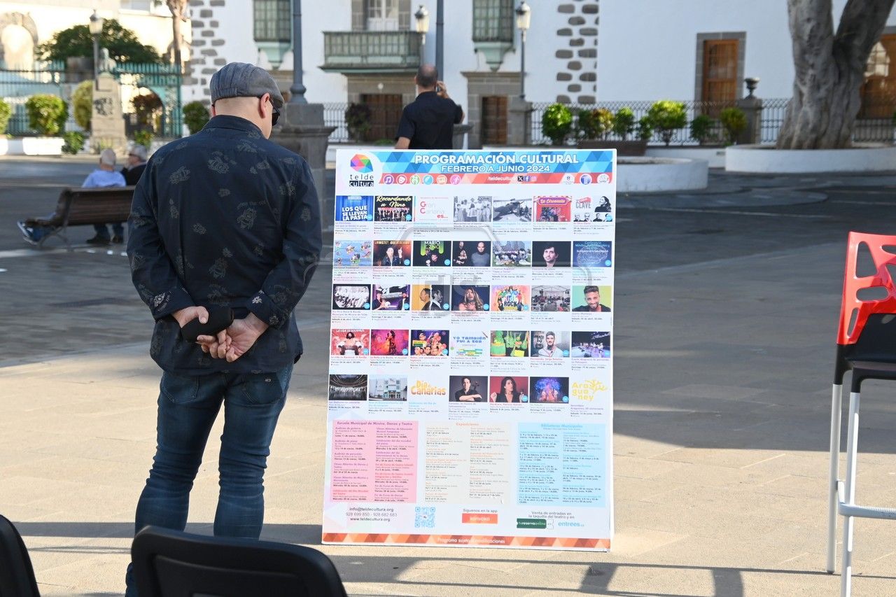 El alcalde de Telde, Juan Antonio Peña, el concejal de Cultura, Juan Martel, y el gerente de Gestel, Jesús Suárez, presentaron hoy viernes, en la plaza de San Juan, la nueva programación cultural que dinamizará la ciudad hasta el mes de julio. Así, se trata de una combinación de actos pensados para todos los públicos, que tocan todas las disciplinas artísticas y que, además, “estarán tanto en los teatros como a pie de calle, porque apostamos por trasladar también la cultura a los maravillosos espacios abiertos que tenemos y por promocionar Telde como ciudad cultural”, resalta el primer edil.
