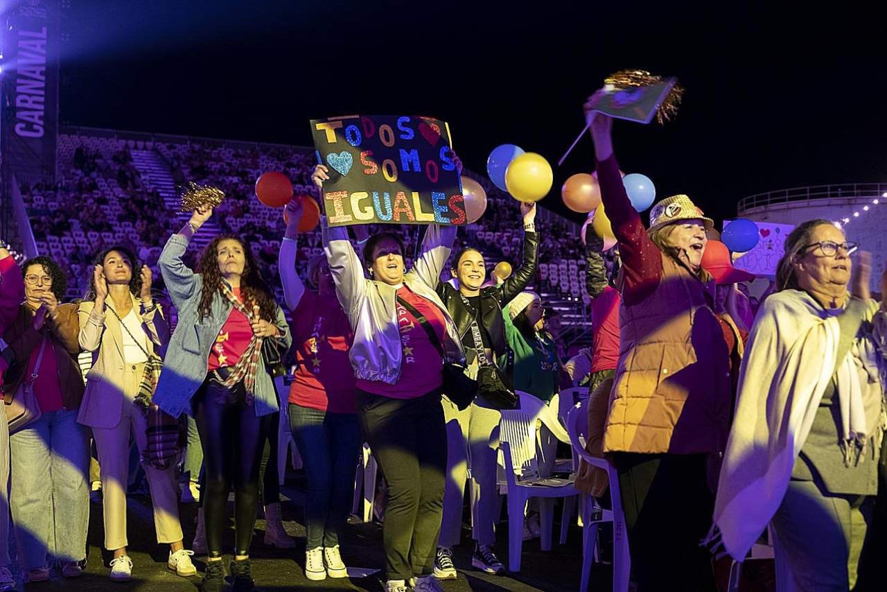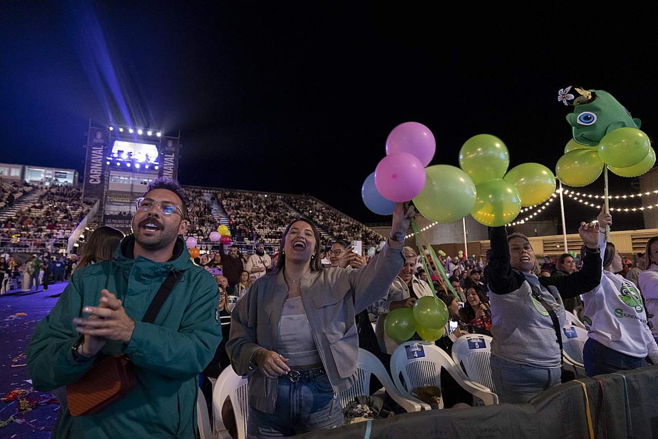 Es la cuarta vez que los teldenses suben a lo más alto del podio murguero que ya encumbraron en 2015, 2017 y 2020. Esta vez, los 97 componentes que dirige Rubén Santana 'Pitu' revalidaron el título con una enérgica puesta en escena y sus dos temas: 'Bien común’ y ‘Sopita y pon’ que les ha valido también el premio 'Benito Falcón' que conceden Los Melindrosos.
