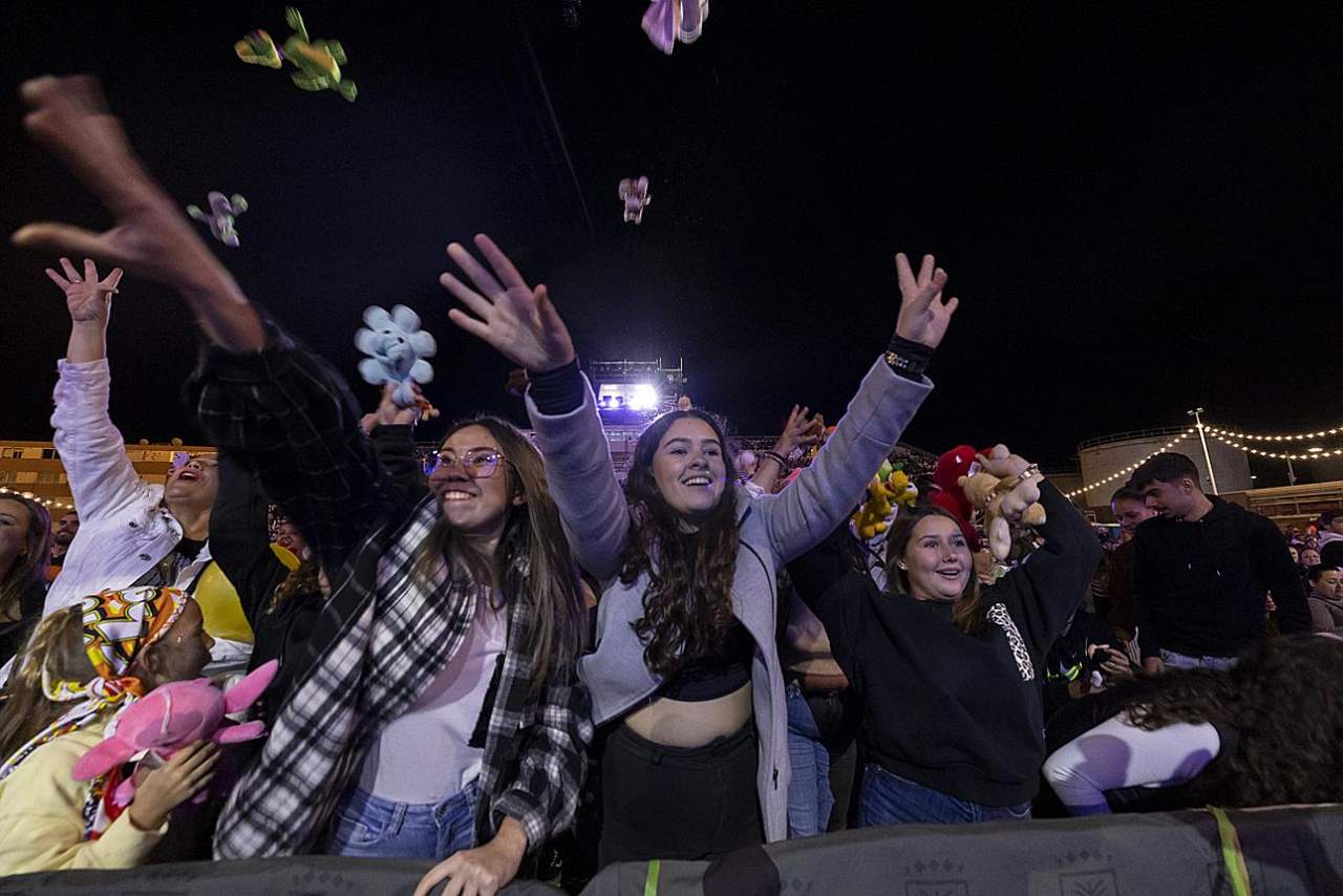 Arropados por un entregado público que agotó en horas las entradas para acudir al último duelo de trompetas que se celebra por primera vez en el recinto de Belén María, Los Chancletas fueron los encargados de abrir las actuaciones seguidos por Serenquenquenes, Los Nietos de Sarymanchez, Los Chacho'Tu, Los Trapasones, Los Legañosos, Los Majaderos y Despistadas. La velada, una de las más esperadas del calendario festivo, arrancó con una gran sorpresa: la presencia de Daniel Calero en la gran noche de las murgas. Rostro inconfundible y señero del concurso, el reconocido presentador de TVC se subió también al escenario para conducir la final junto con Ana Trabadelo y Baby Solano, quienes han ejercido de maestros de ceremonia en las fases previas.