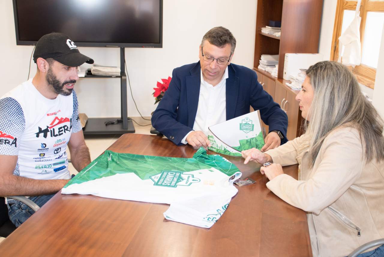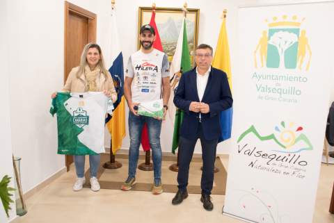 El alcalde del Ayuntamiento de Valsequillo, Francisco Atta, y la concejala de Deportes de la institución local, Natalia Ramírez, han recibido al campeón de la Crono Trail Almendro en Flor 2024, que se disputó el pasado 27 de enero en el municipio de Tejeda.