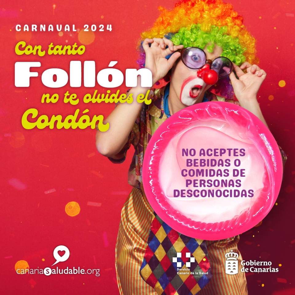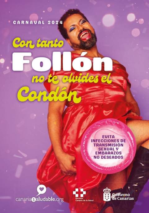 La Consejería de Sanidad del Gobierno de Canarias, a través de la Dirección General de Salud Pública, pone en marcha una campaña de prevención de infecciones de transmisión sexual (ITS) y embarazos no deseados y otros riesgos para la salud con motivo de la celebración del carnaval 2024, dirigida fundamentalmente a la juventud.