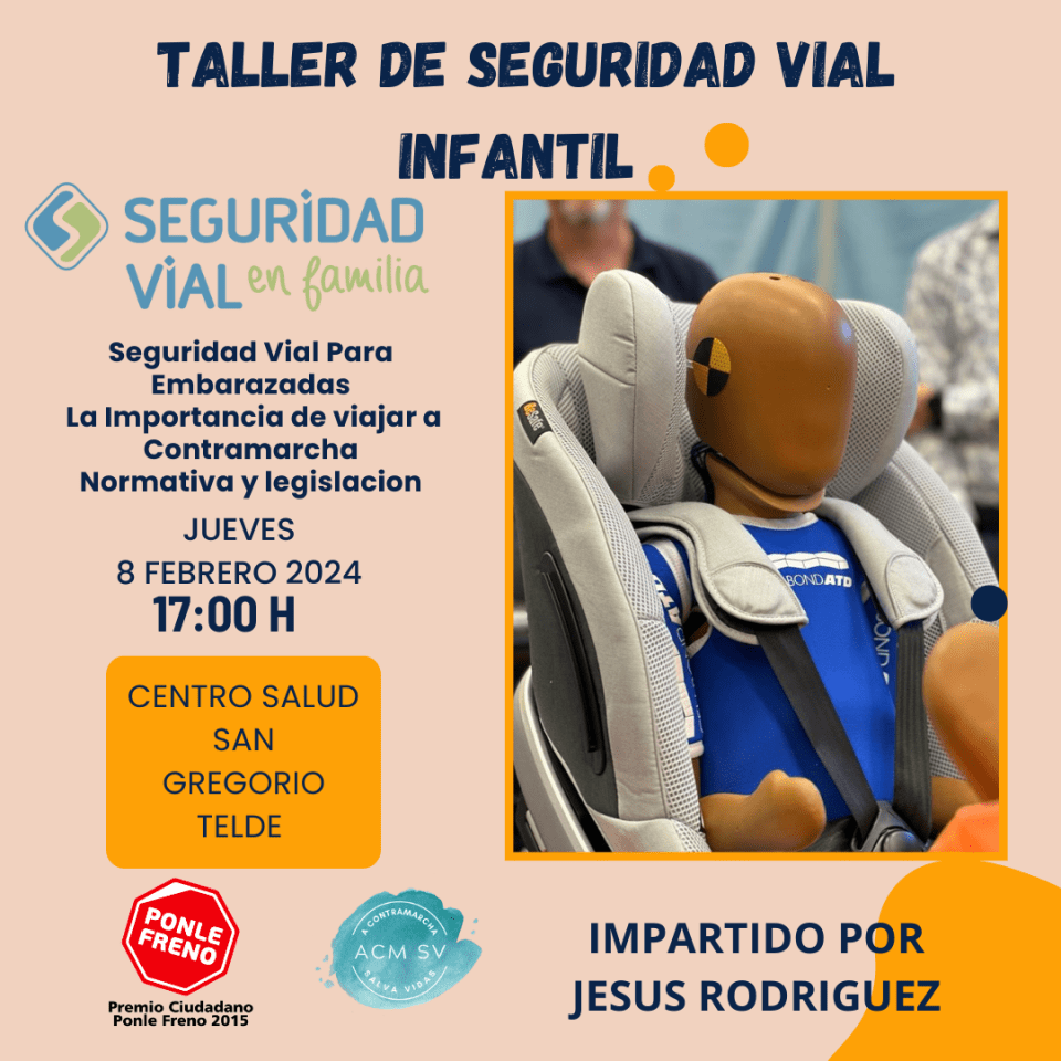 Organizado por el centro de Salud de San Gregorio, el próximo jueves 8 de febrero (17.00 horas), Jesús Rodríguez, CEO de Seguridad Vial en Familia, experto profesional en seguridad vial y Premio Ciudadano Ponle Freno 2015, ofrecerá una charla-taller sobre seguridad vial enfocada principalmente en los sistemas de retención infantil y a la seguridad de las embarazadas.