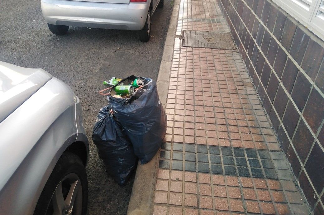 Además, se quejan de que dos bolsas de basura llevan tres días en la acera de Vasco Nulñez de Balboa, mientras que la zona de contenedores cercana también se acumulan los residuos.