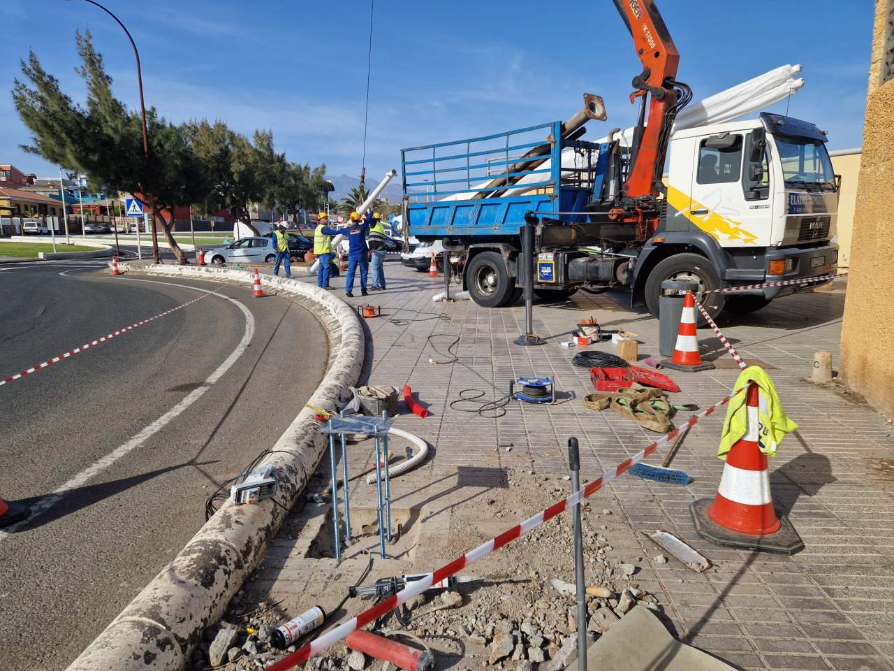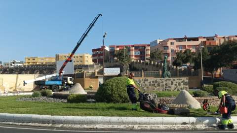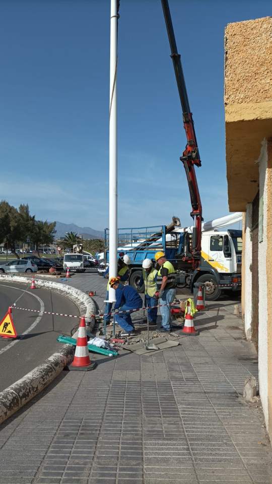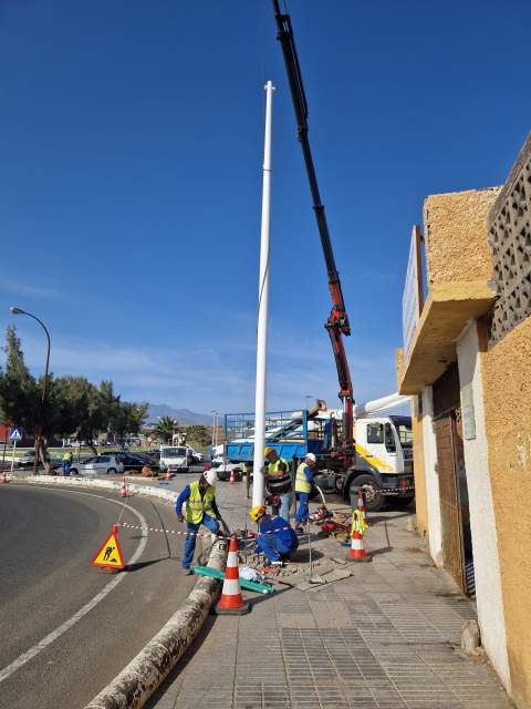 La Concejalía de Alumbrado Público, dirigida por Juan Francisco Artiles, ha comenzado los trabajos de instalación de ocho farolas nuevas en la rotonda situada junto al CEIP La Garita.