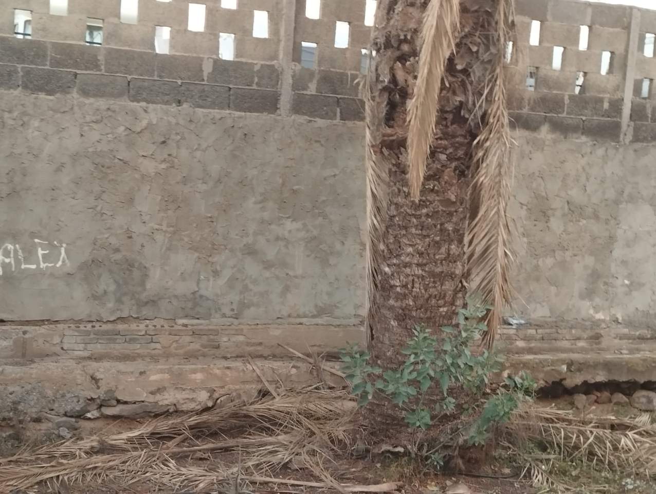 Explican que se acumulan restos de palmeras y ramas secas en el árbol, mientras las malas hierbas campan a sus anchas en los jardines, por lo que piden una intervención municipal.