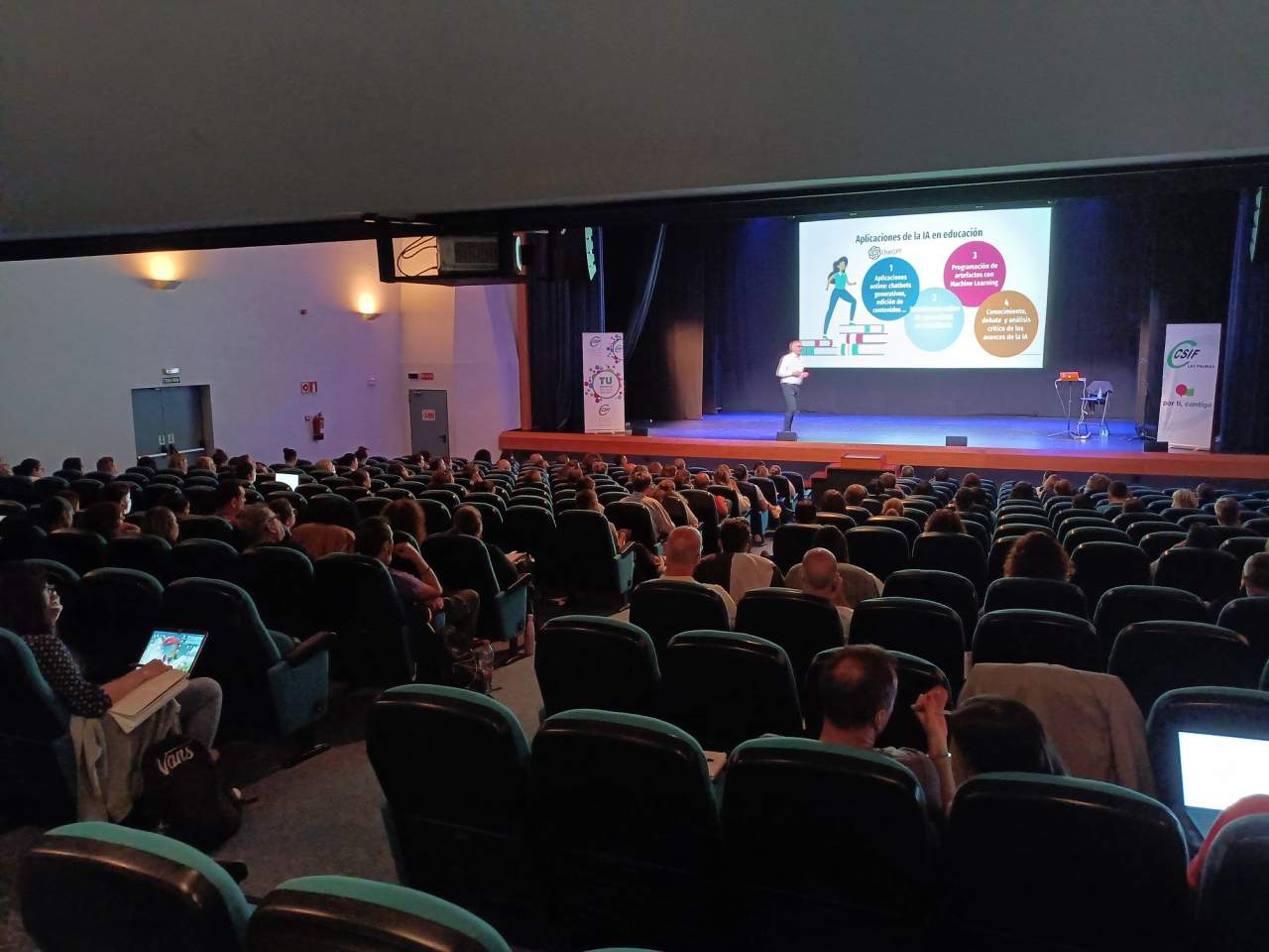 La iniciativa gratuita para el profesorado canario, que tuvo lugar en el Teatro Juan Ramón Jiménez, ofreció herramientas para utilizar la inteligencia artificial con el objetivo de mejorar el trabajo docente.