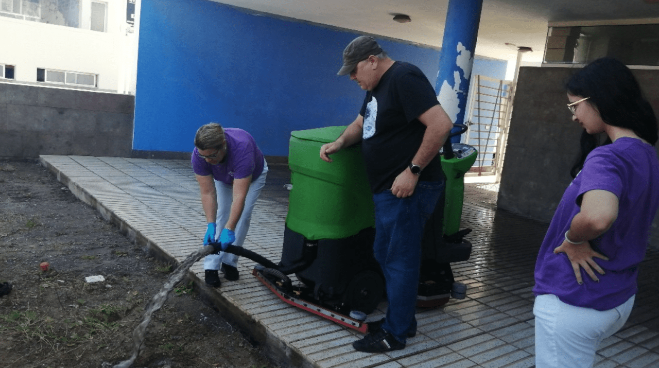 El alumnado trabajador del PFAE Oxígeno, propuesto por la Concejalía de Desarrollo Local del Ayuntamiento de Telde, que lidera Nayra Navarro, ha comenzado una formación teórica-práctica sobre la utilización de maquinaria de limpieza, impartida por profesionales en el manejo y mantenimiento de este tipo de equipamientos y de productos específicos para los mismos. “Tanto los aprendices como los docentes están haciendo una labor excepcional y es importante poner en consideración el gran esfuerzo que llevan a cabo para superarse y ser mejores profesionales cada día”, puntualiza la edil del área.