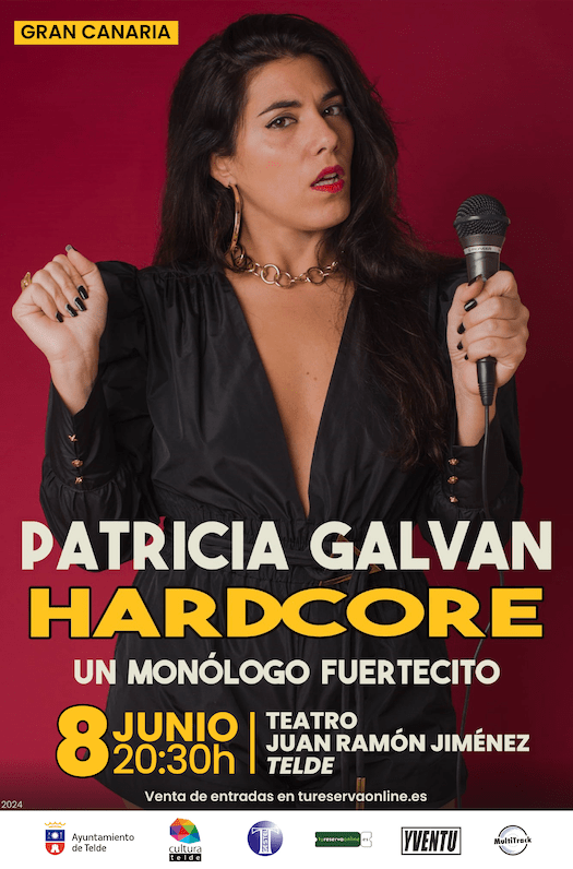 El día 8 de junio de 2024 a las 20.30 horas estará en el Teatro Juan Ramón Jiménez de Telde, en Gran Canaria, y se pueden adquirir las entradas en Tureservaonline.es o en el siguiente enlace: https://entradas.tureservaonline.es/events/patricia-galvan-hardcore-telde.