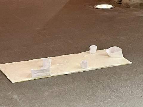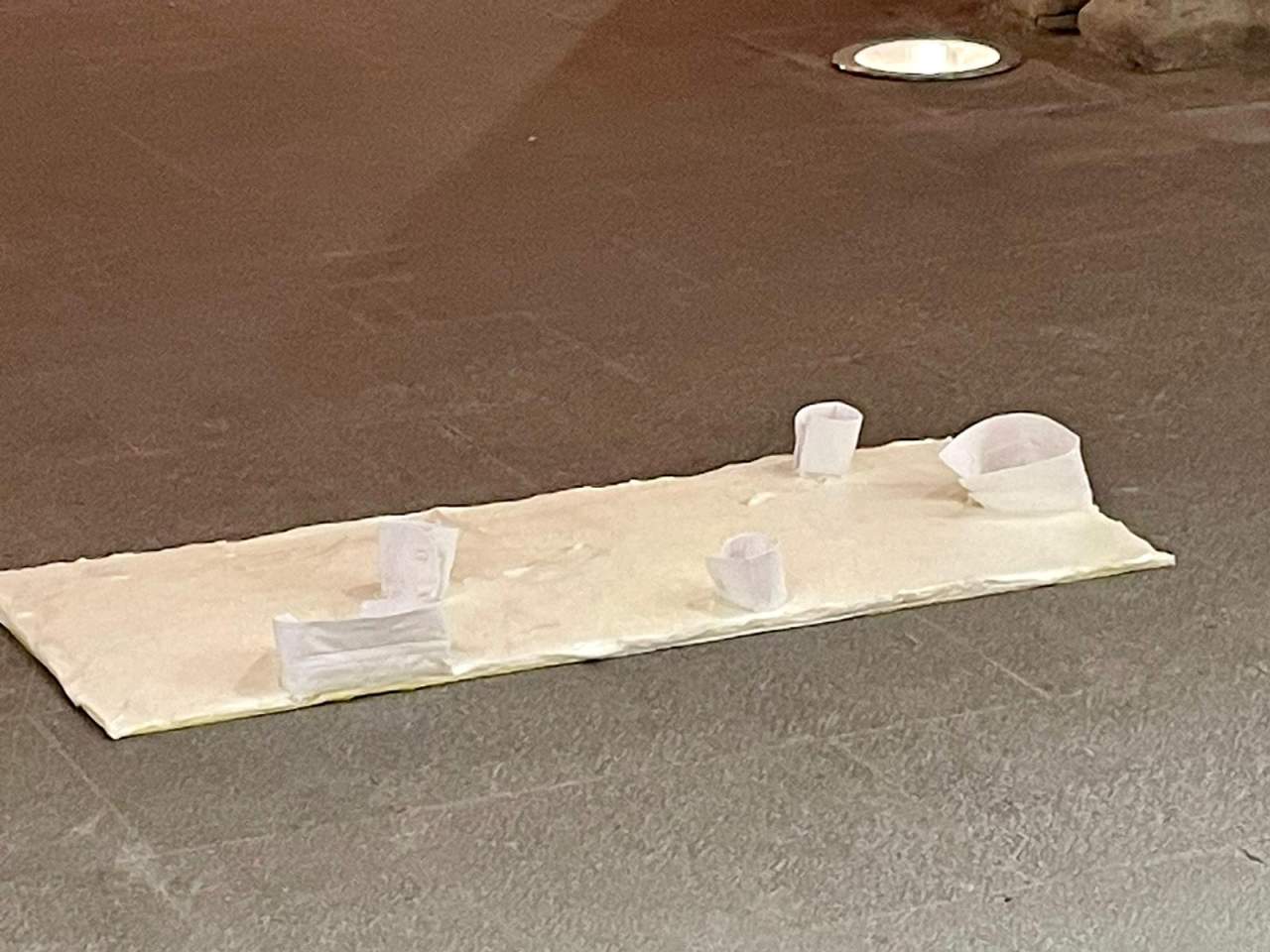 Despliega así la reinvención de artefactos subjetivados por culturas de la forma, que le atribuye significados propios de una estética rígida de forma limitante, como supuestamente los “unicos posibles”. Inés convierte así al suelo, cuellos y gemelos como representaciones metafóricas de posibilidades. Despierta de los significados limitantes, que fabricamos como resultado de asociaciones entre elementos, usos y formas no conscientes de limitaciones auto impuestas. Raúl Rodríguez Quintana. Antropólogo Febrero, 2024