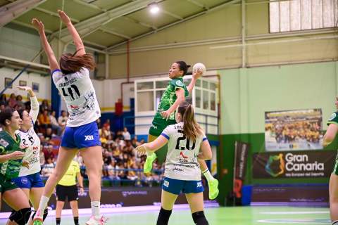 Tras el 4-4, las de Antonio Moreno le metieron una marcha más al partido. Entre intercambios de golpes y exclusiones en ambos bandos, las grancanarias pusieron una segunda ventaja de dos goles (6-4) en el partido. Eider Poles seguía capitalizando el juego ofensivo de su equipo como directora de orquesta, ahora acompañada por un juego coral al que se unieron Daniela Moreno y Arinegua Pérez, en los extremos, y los golazos de Larissa da Silva, que desplegaba con violencia su brazo.