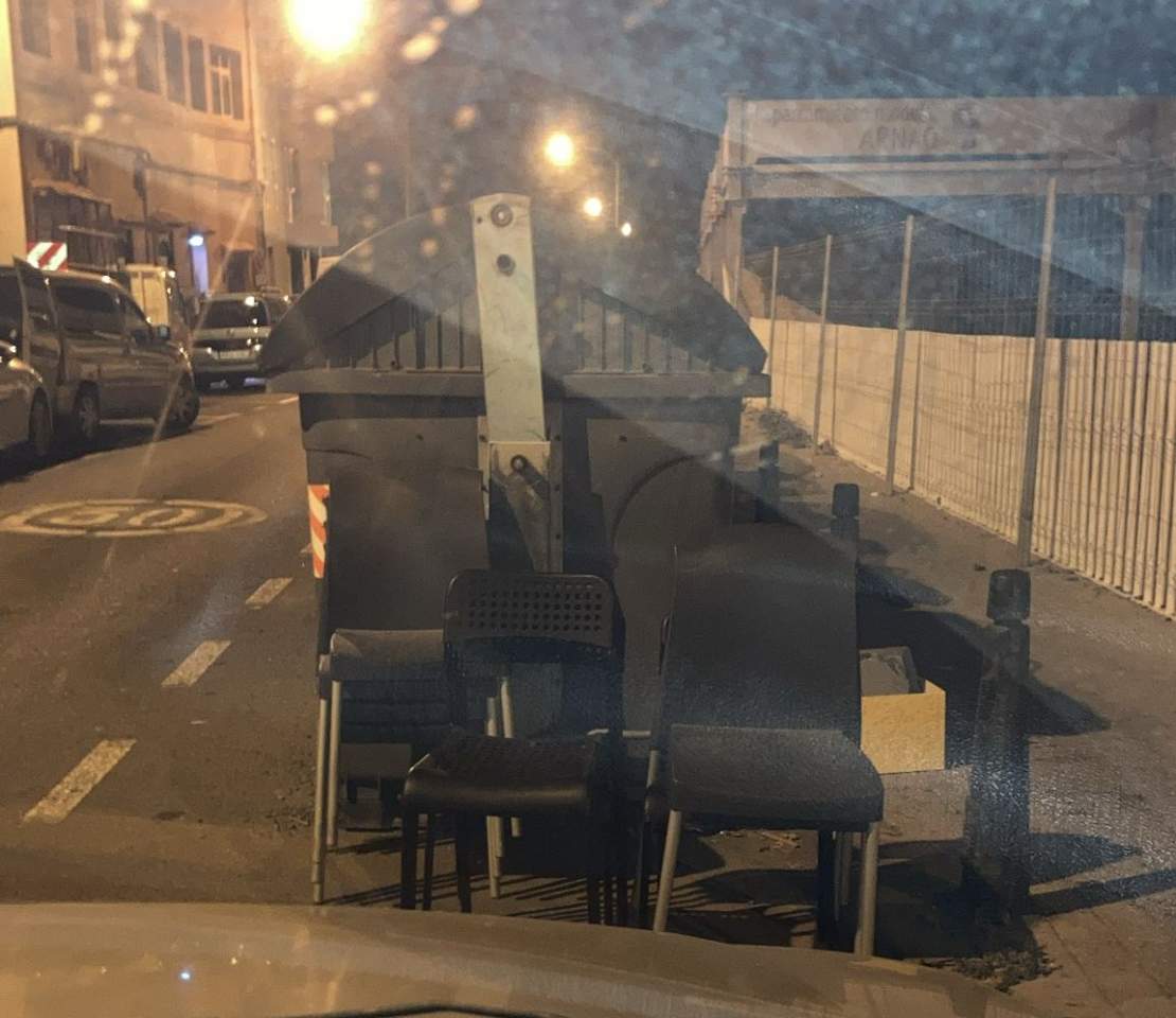 Dos individuos fueron sorprendidos cometiendo un acto de incivismo al dejar ocho sillas y una mesa junto a los contenedores de basura en la calle de El Roque, frente a la Panadería de El Roque, durante la última hora de la tarde de este sábado.