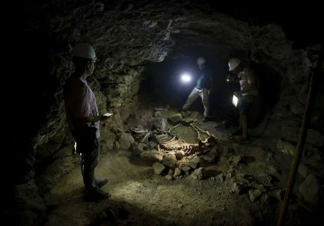 Igualmente les han llamado a atención los restos esqueléticos de un équido, posiblemente de los años 70 u 80 y al que han denominado Estrategos, que Motas y Galindo quieren mantener 'in situ' como recurso didáctico para el día, cada vez más cercano, en que este yacimiento se abra a las visitas.