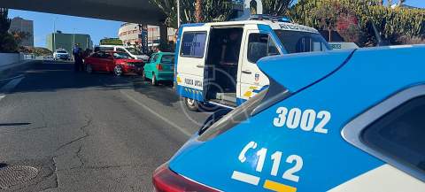 Dos vehículos colisionaron es tarde de manera casi frontal en la calle de Obispo Verdugo, justo debajo del puente de la carretera de circunvalación (GC-100). El suceso tuvo lugar aproximadamente a las 16:30 horas de este domingo, dejando una escena impactante y varios heridos.