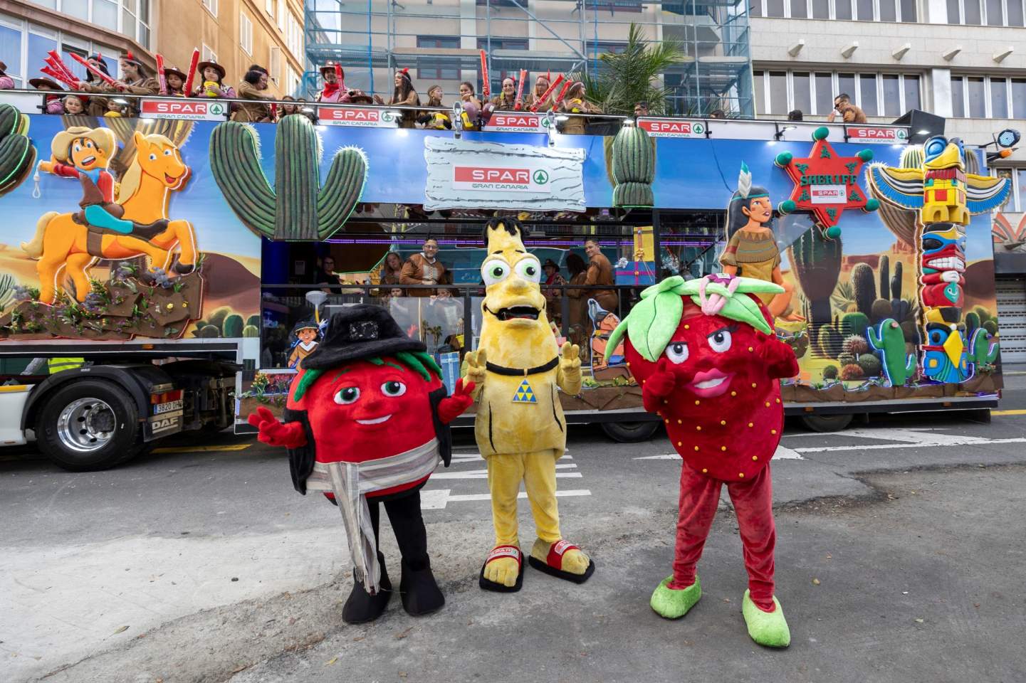 SPAR Gran Canaria vuelve a participar en uno de los eventos más familiares y tradicionales del carnaval con una gran carroza ambientada en el lejano oeste, que fomenta la igualdad con una alegoría entre indios y vaqueros. La carroza cuenta con llamativos y coloridos elementos que animarán con su música a pequeños y mayores durante su paseo por la capital grancanaria.