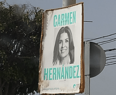 Vecinos de Las Huesas critican el “olvido” en el que se encuentra sumido el barrio. Y como ejemplo, ponen un cartel electoral de la candidata de Nueva Canarias a la Alcaldía de Telde en los últimos comicios municipales, Carmen Hernández, que todavía sigue contado de un poste.