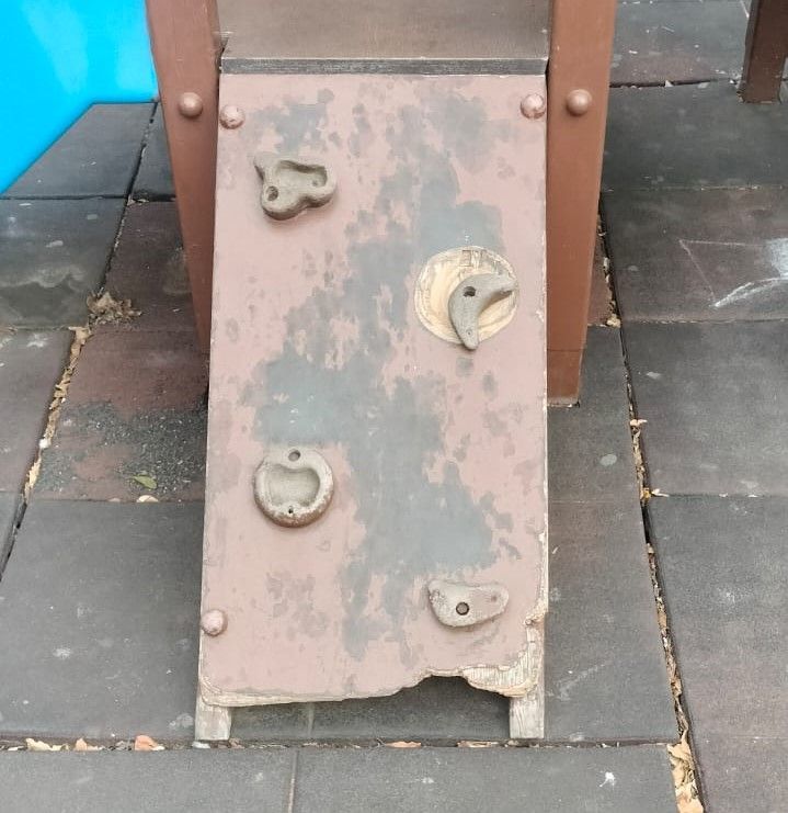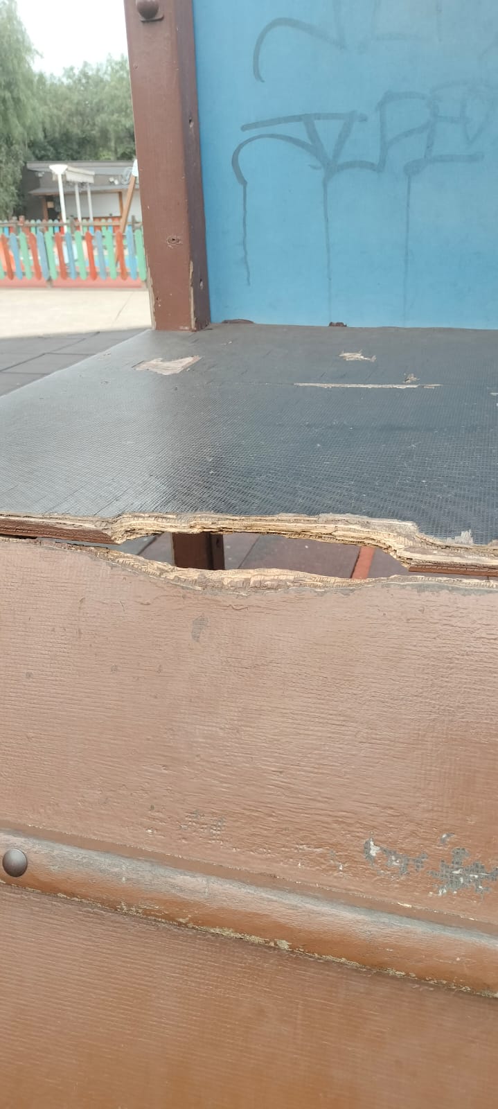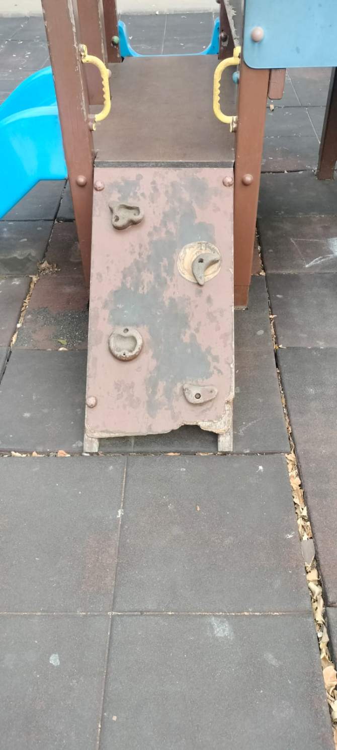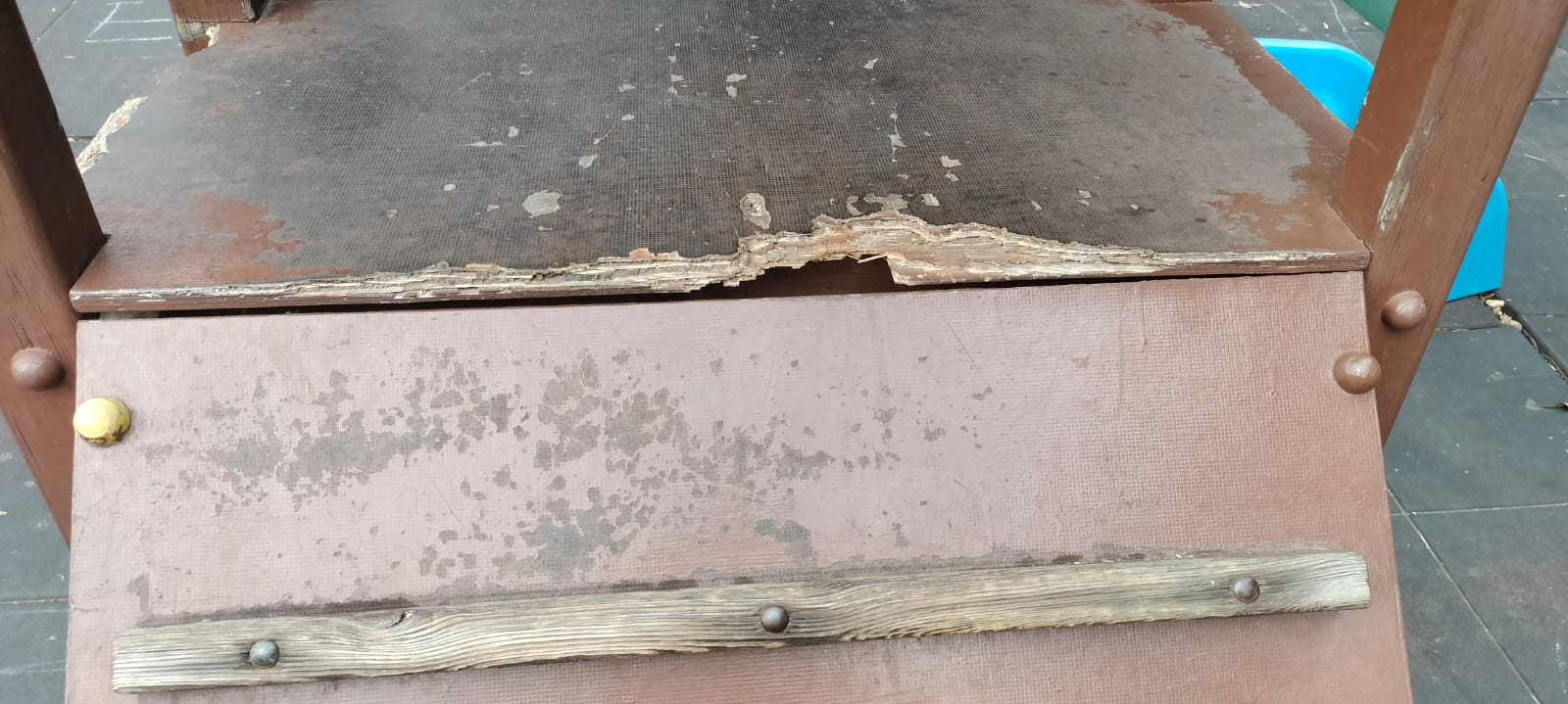 Usuarios del área infantil del parque de San Juan denuncian el lamentable estado en el que se encuentra este espacio, con juegos rotos con las maderas astilladas y el pavimento destrozado y sucio, lo que supone un peligro para los niños y niñas que utilizan este recinto.