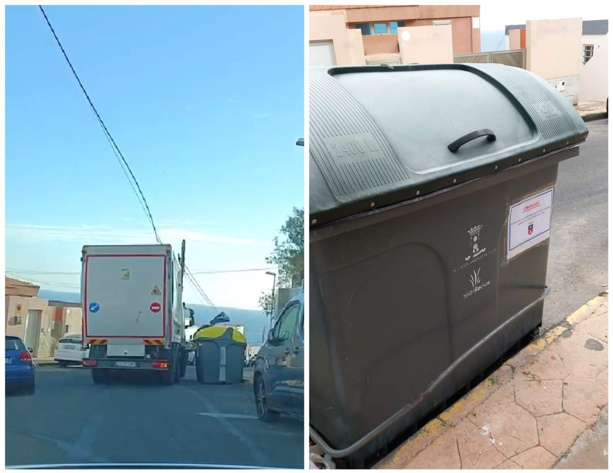 Recuerdan que el Ayuntamiento de Telde retiró los contenedores a la altura del número 42 con el argumento de que los camiones de recogida de basura no podía circular por este punto debido a la incidencia.