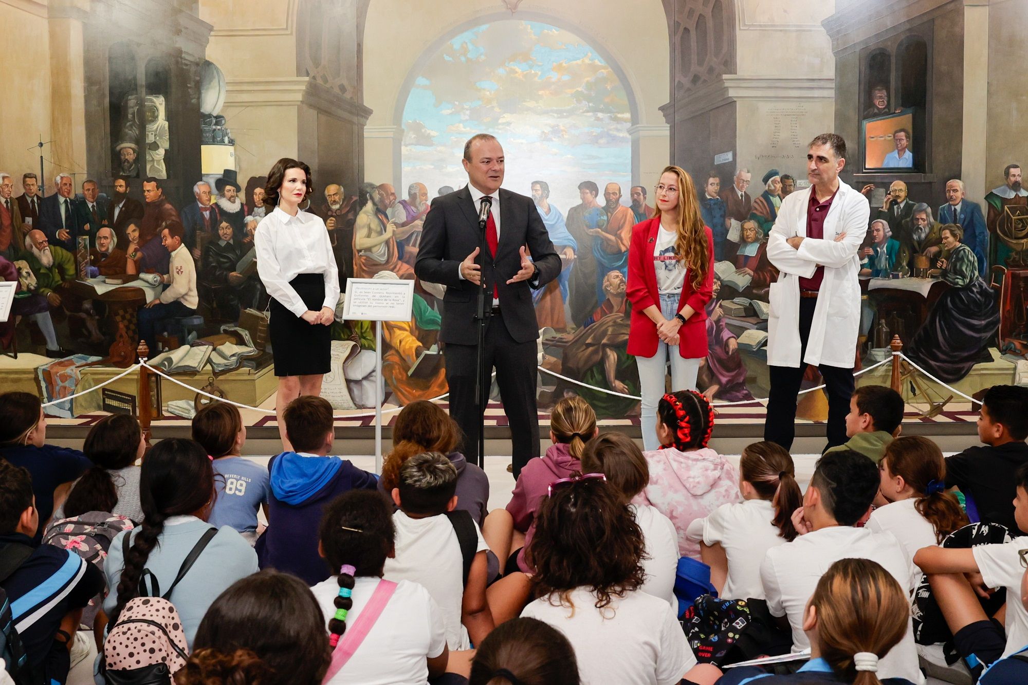 El acto inaugural ha tenido lugar frente a un mural en el que están representadas las grandes figuras de la ciencia entre las cuales sólo se encuentran cuatro mujeres ya que en la Antigüedad eran relegadas a ser invisibles. Para rendirles homenaje y lograr justamente lo contrario el vicepresidente Hidalgo y la consejera Morán han querido hacerse una foto con todas las niñas y niños que han asistido al acto para simbolizar el empoderamiento de la figura de la mujer en el pasado, presente y futuro de la ciencia.