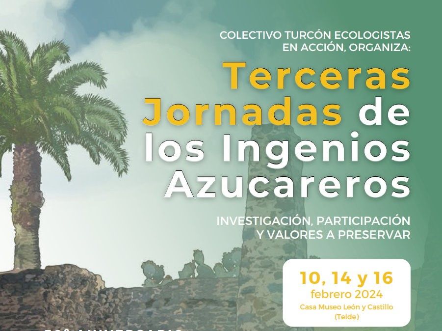 Las III Jornadas de los Ingenios Azucareros: Investigación, Participación y Valores a Preservar, programadas por el Colectivo Turcón Ecologistas en Acción de Telde, conmemorando el 30 aniversario de la caída (febrero 1994), de una de las pilastras del yacimiento de los restos del ingenio azucarero de Los Picachos, culminaron el viernes 16 después de un interesante encuentro con la historia de los ingenios azucareros y el entorno social, comercial y artístico que surgió del cultivo de la caña de azúcar en nuestras islas y en detalle en Gran Canaria tomando como centro de investigación y estudio el municipio de Telde y sus comienzos en este cultivo en los siglos XV y XVI.
