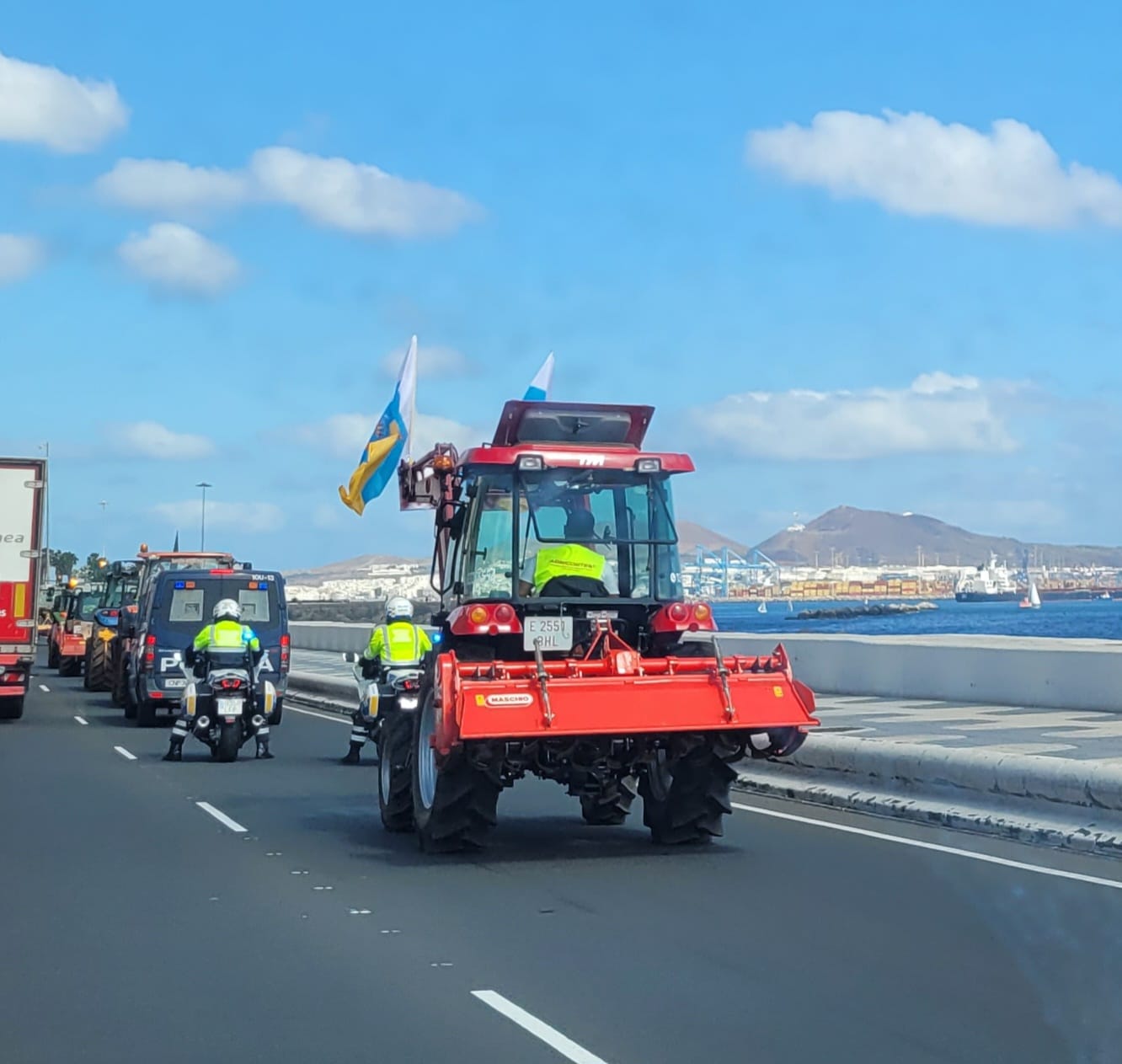 La protesta arrancó a las 10.00 horas de este miércoles, cuando los tractores se reunieron en diferentes municipios del norte de la isla, como Santa María de Guía, para luego dirigirse hacia la Presidencia del Gobierno de Canarias, donde serán recibidos por el mandatario canario y el consejero de Agricultura. Posteriormente, se dirigirán a la Plaza de La Feria para el reparto de plátanos.