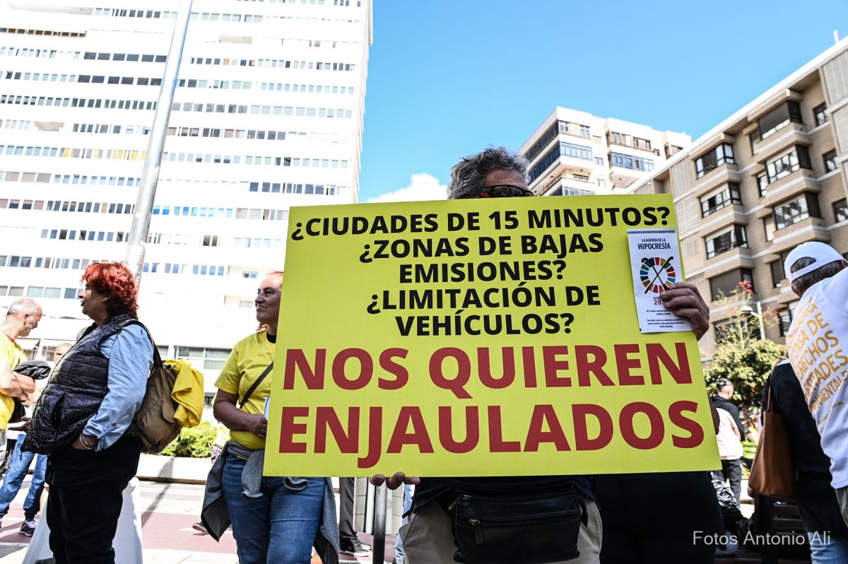 La zona está acordonada por los diferentes cuerpos de seguridad, mientras que los manifestantes muestran pancartas, entonan cánticos en contra de la Agenda 2030 y hacen sonar ensordecedores silbatos.
