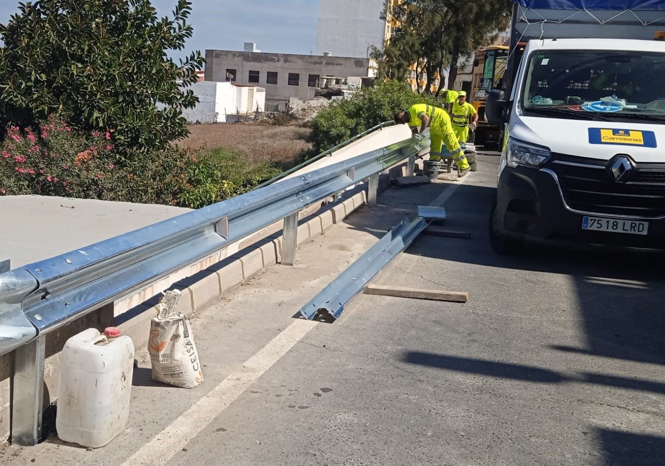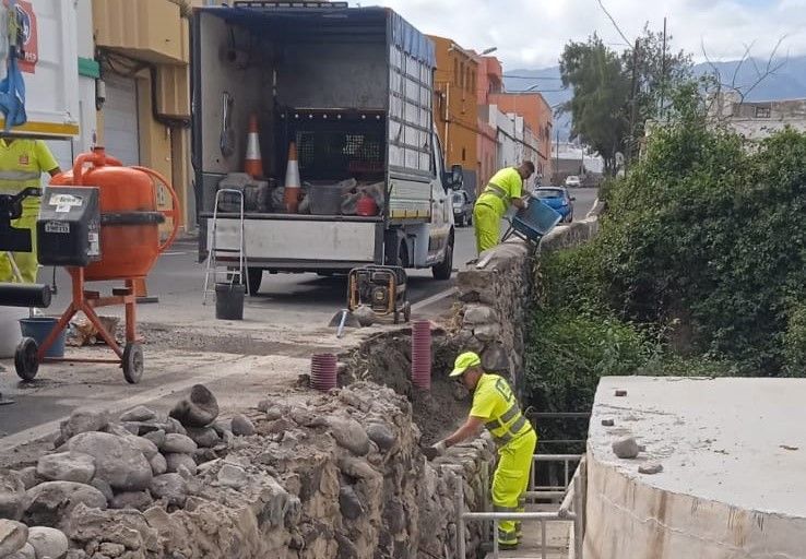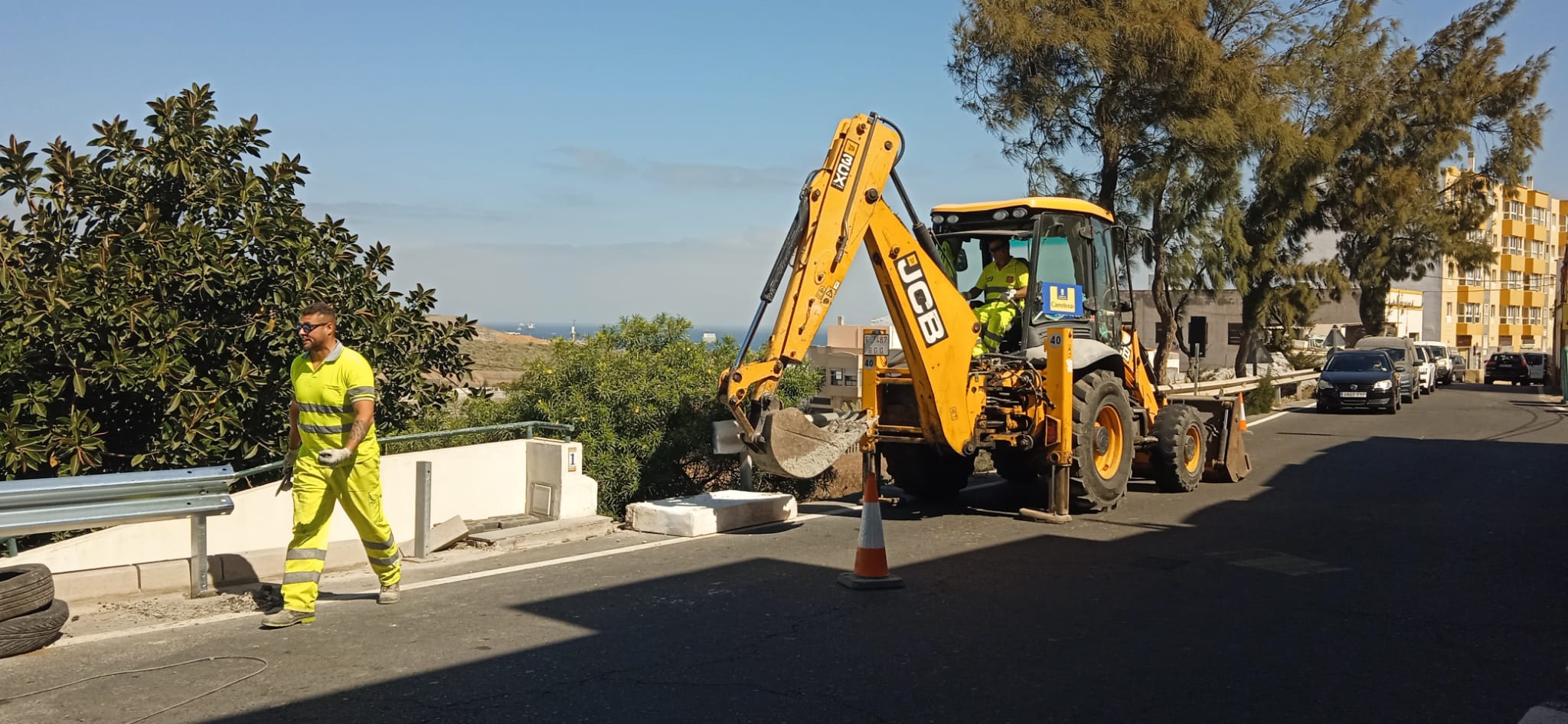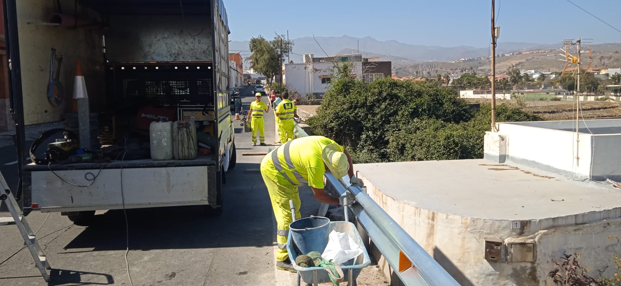 El Servicio de Conservación de Carreteras del Cabildo de Gran Canaria inició la pasada semana la obra, que avanza a buen ritmo y ya está casi finalizada, ya que tras la retirada de piedras y escombros, y el posterior levantamiento de la nueva pared, ya se está instalando el vallado de protección.