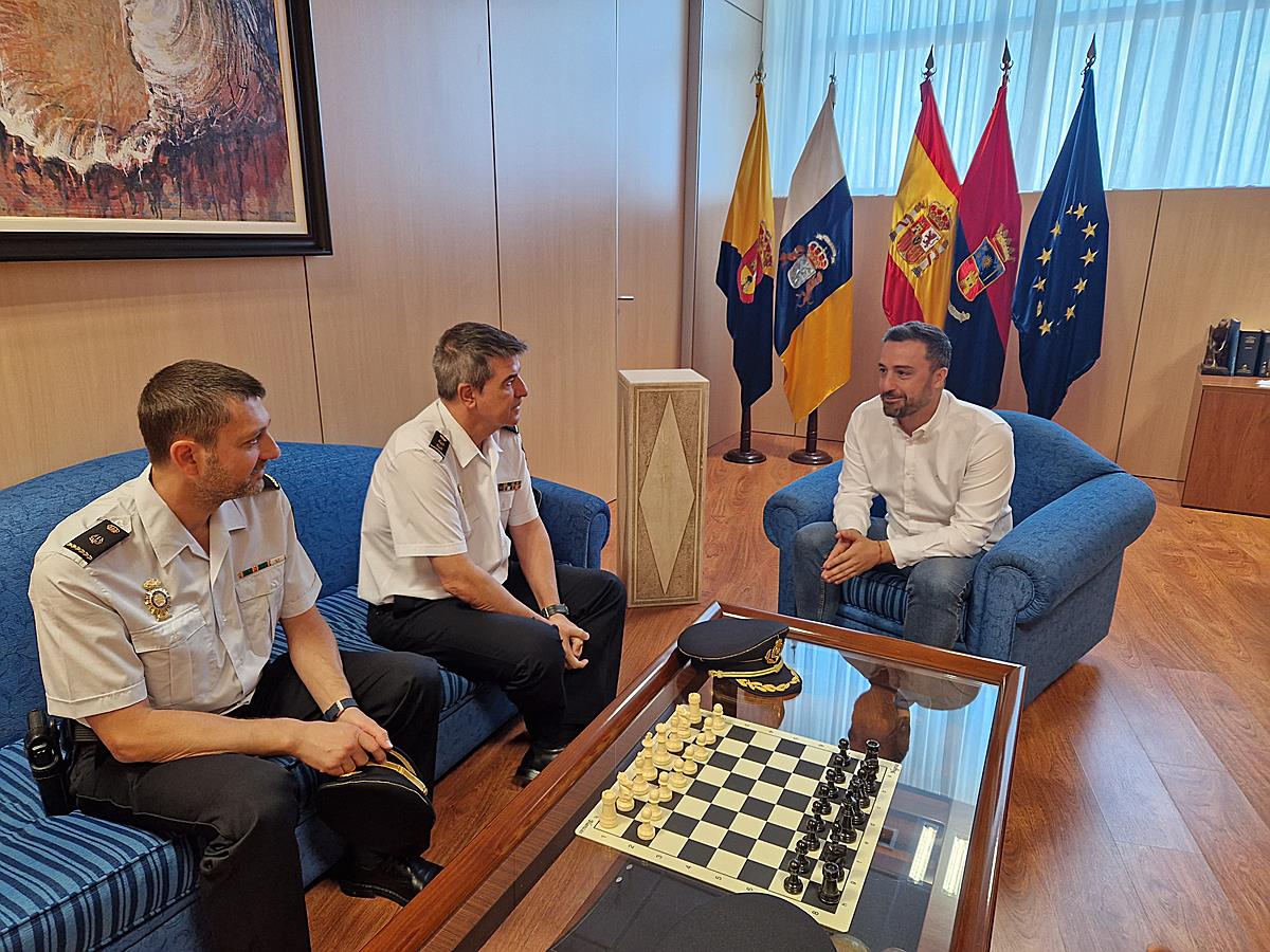 El alcalde de Telde, Juan Antonio Peña, dio la bienvenida a la ciudad, en nombre de todos los teldenses, a Francisco Javier Jiménez Ávila, nuevo comisario de la Policía Nacional en Telde. El encuentro tuvo lugar en las dependencias del Ayuntamiento de Telde, en El Cubillo, en el que también estuvieron presentes el inspector-jefe de Seguridad Ciudadana de la Comisaría de Telde, Raúl Sanabria, y el jefe de la Policía Local del municipio, Félix Ramos,