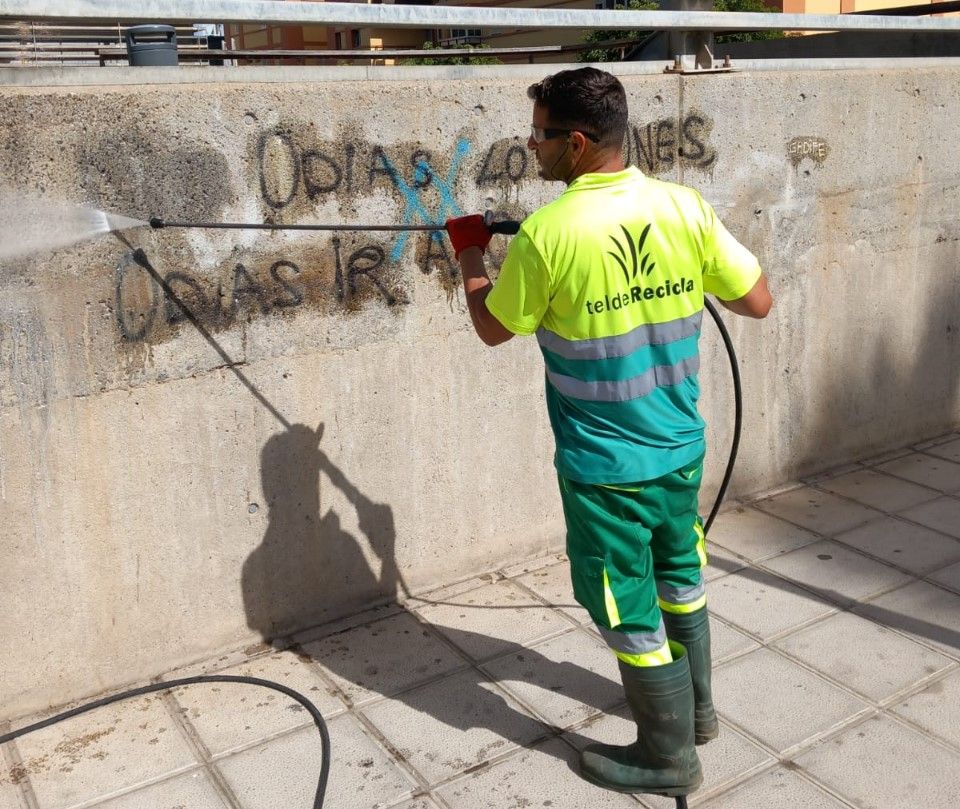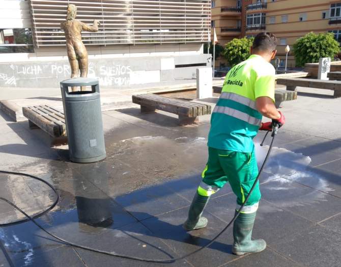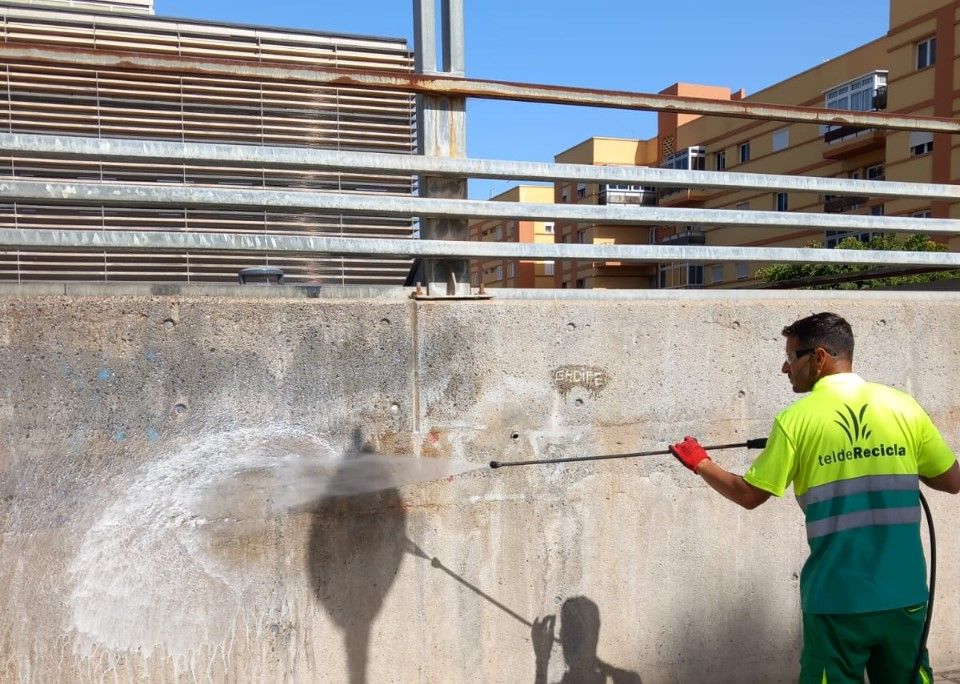 En una iniciativa destinada a mejorar la estética y la calidad del entorno urbano, los operarios del servicio de Limpieza Viaria de Telde han llevado a cabo una intensa jornada de limpieza en la Plaza de los Juzgados.