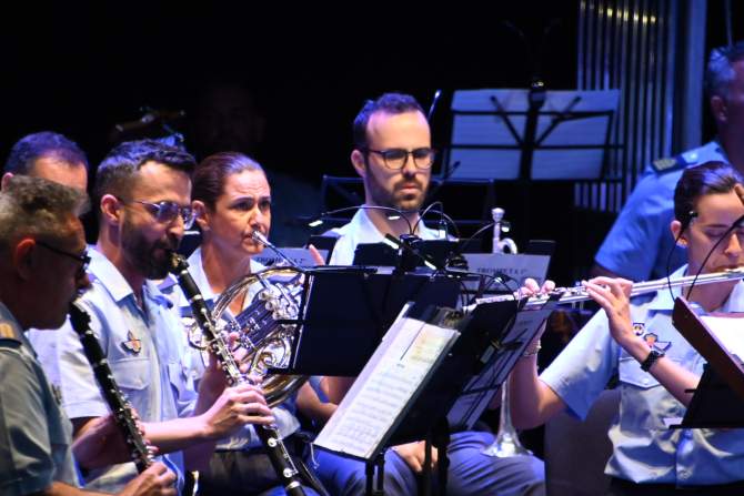 Una hora después, comenzó el concierto a cargo de la Unidad de Música del Mando Aéreo de Canarias. Durante la velada, el grupo musical deleitó al público con un variado repertorio que incluyó obras como "Una noche en Granada" de Emilio Cebrián, "La ruta del Cid" de David Rivas, "Balkan Dance" de Etienne Crausaz, "Prost!" de Antón Alcalde, y la representación de "Gran Canaria" de Los Gofiones.