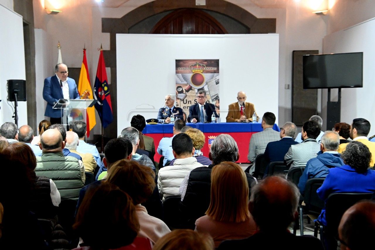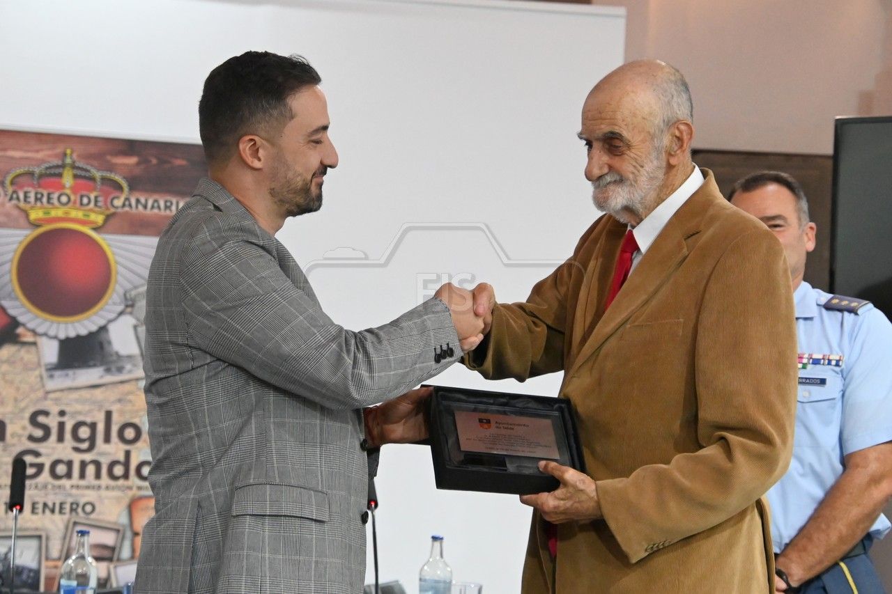 El concejal de Cultura, Juan Martel, fue el encargado de abrir el acto dando la bienvenida a todos los presentes, mientras que el coronel jefe de la Base Aérea de Gando, Juan José Terrados, presentó a los ponentes, los cronistas oficiales de Telde e Ingenio, Antonio María González Padrón y Rafael Sánchez Valerón, respectivamente, así como al coronel Juan Andrés Toledano Mancheño, representante del Servicio Histórico Cultural del Ejército del Aire y del Espacio.