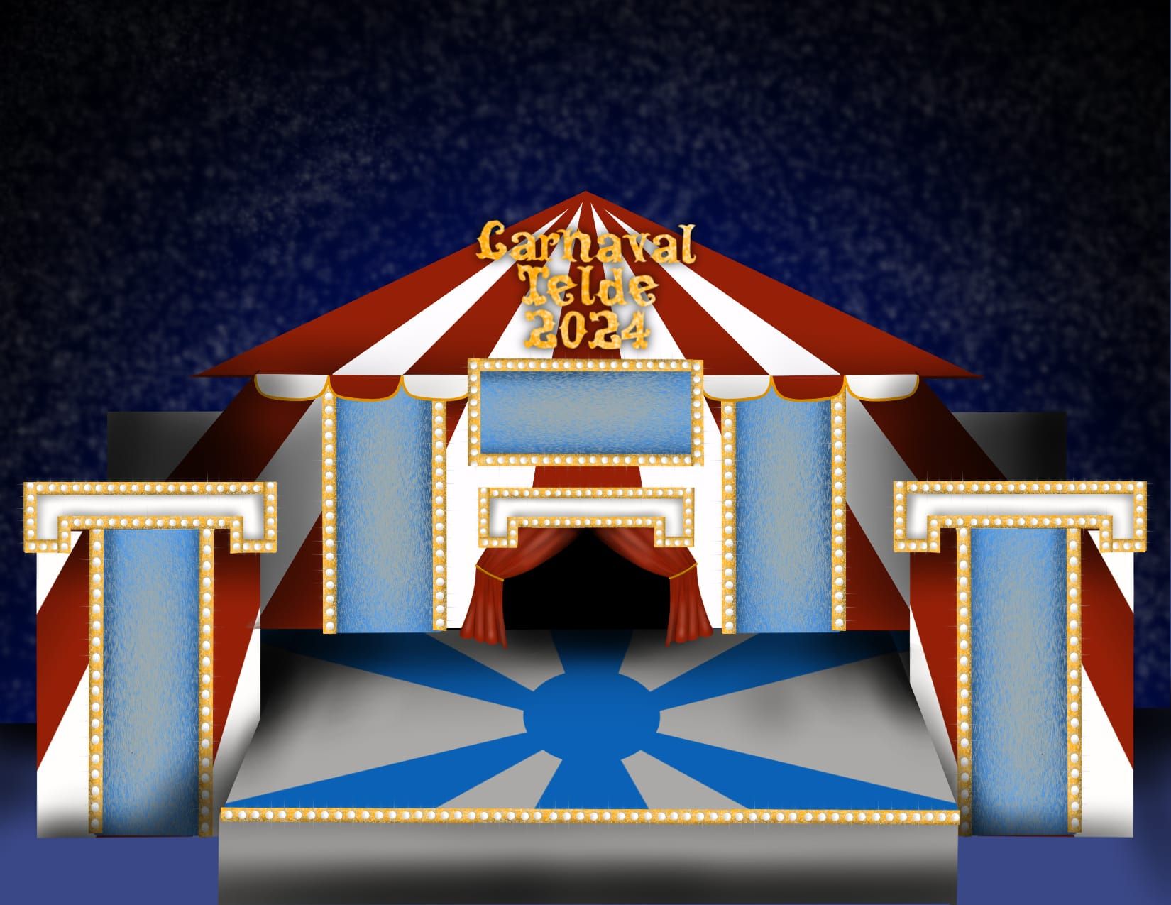 La Concejalía de Festejos, que dirige Miguel Rodríguez, se ha inspirado en una gran carpa de circo para montar el escenario principal del Carnaval de Telde 2024, cuya ubicación será en el Auditorio José Vélez, en el parque urbano de San Juan.
