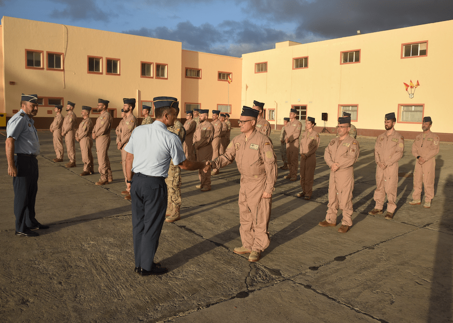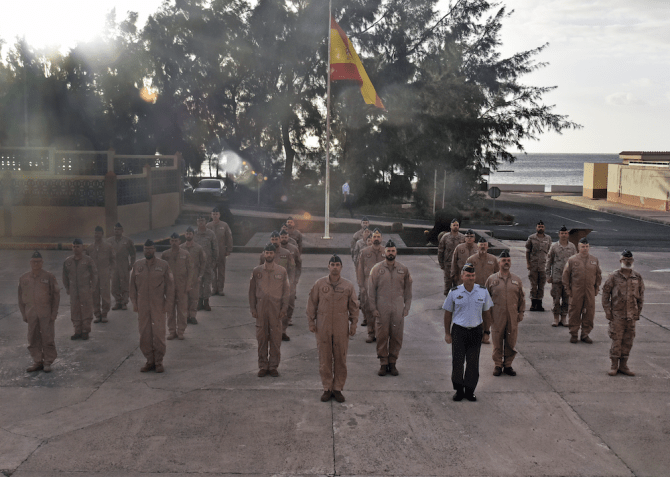 Seguidamente, el propio coronel se despidió individualmente de cada uno de los componentes del contingente, finalizando la ceremonia con una fotografía de grupo y un café de confraternización al que también asistió el general jefe del Mando Aéreo de Canarias, Francisco Javier Vidal Fernández, quien de manera más privada también dedicó unas palabras al personal participante en la misión.