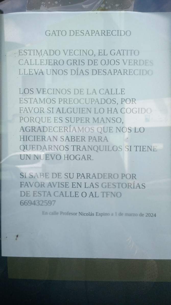 Los vecinos de la zona han estado dedicando tiempo y esfuerzo para cuidar de estos gatitos callejeros, asegurándose de que reciban alimento y atención adecuada. Sin embargo, su preocupación se ha intensificado desde el martes pasado, cuando uno de los felinos, conocido cariñosamente como Tomás, desapareció sin dejar rastro.