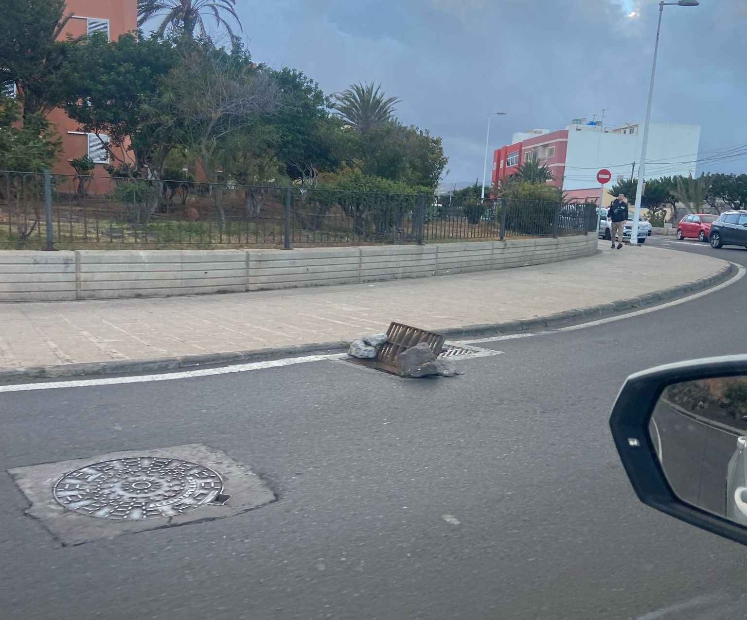 Concretamente, se trata de una arqueta de la recogida de aguas pluviales que se encuentra levantada en la curva entre las entradas a los aparcamientos 1 y 2. Esta situación representa un riesgo tanto para la circulación de vehículos como para los peatones que transitan por la zona.