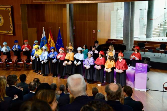 Además, en su discurso, el rector se refirió al número de mujeres que han recibido el alto reconocimiento de Doctoras Honoris Causa, desde la creación del Premio Nobel en el año 1901. “Solo un 6% de quiénes han recibido este reconocimiento han sido mujeres, aunque este porcentaje ha sido de casi el 20% en los últimos 40 años”, destacó. “En las universidades españolas el 8% de los Doctores Honoris Causa han sido mujeres -en la ULPGC este porcentaje era del 7%- sin ninguna diferencia apreciable en función de la gobernanza por rectores o rectoras, y, además, la situación de inequidad poco ha cambiado en los últimos 40 años”. Este Acto de Investidura de once nuevas Doctoras Honoris Causa en la ULPGC es, por tanto, el momento “de empezar a revertir estos números reconociendo a todas estas mujeres, que atesoran un perfil de excelencia y que nos honran pasando a formar parte de esta institución, y que desde hoy representan ya el 30% de nuestro claustro de Doctoras y Doctores Honoris Causa”, informó.