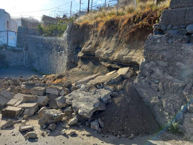 Los operarios municipales de la Concejalía de Vías y Obras, que dirige Iván Sánchez, han despejado, durante el día de hoy, el camino de acceso a Lomo Rayo, en el barrio de La Solana, tras el desprendimiento de un muro que colapsó ayer por la tarde y dificultaba el paso por el tramo accidentado, tal y como adelantó TELDEACTUALIDAD.