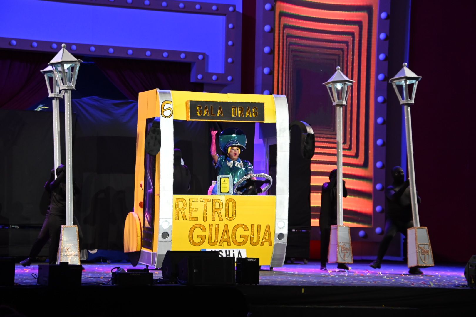 En primer lugar salió a escena Drag Vintash, con la fantasía Estoy dentro de todas las mujeres que soy, patrocinado por Perfumería Alelí Telde y con diseño de Ivan Artiles y Omar Rodríguez.