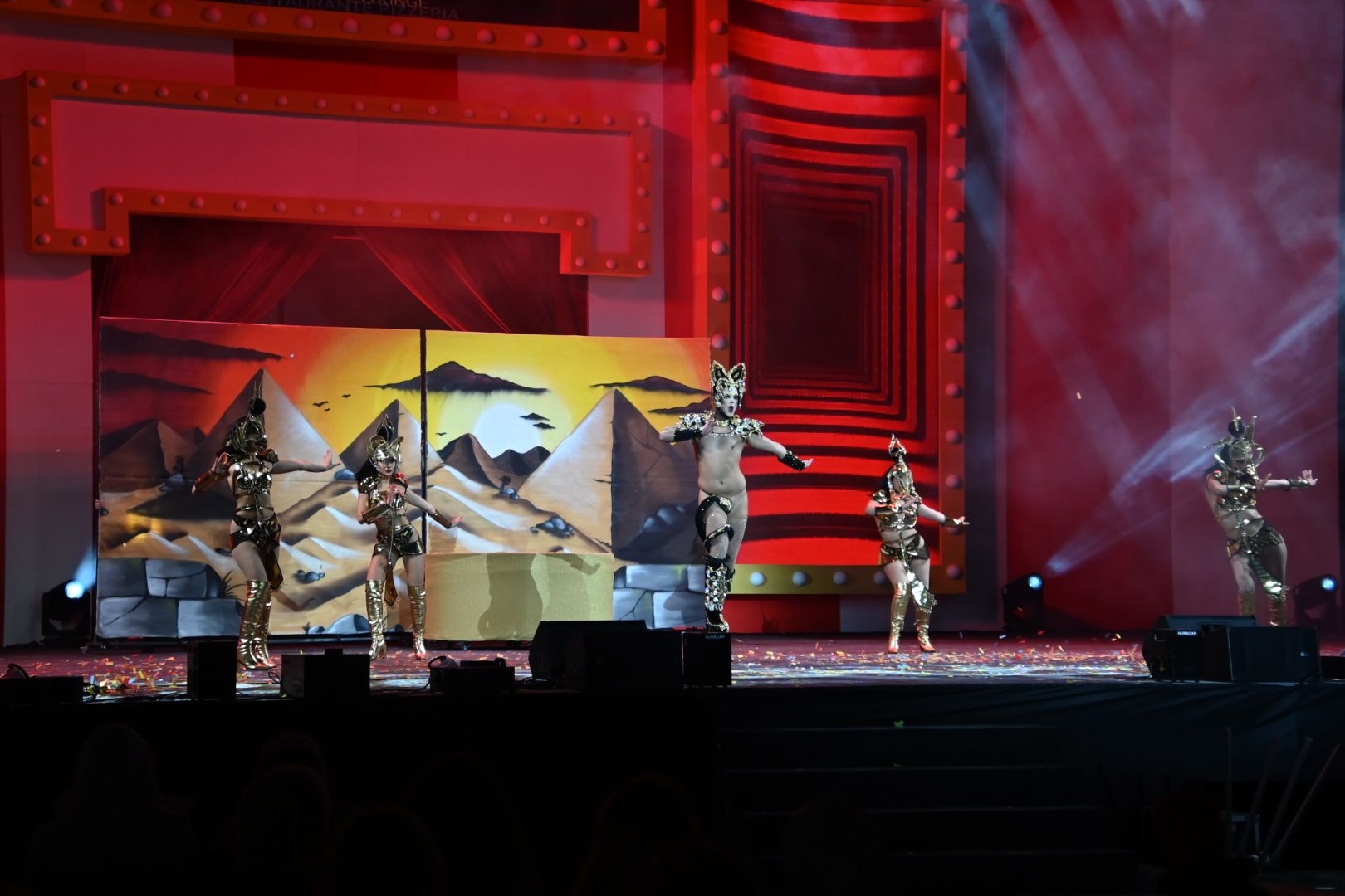 Tras una espectacular obertura inspirada en un circo de principios del siglo XX, temática que tienen este año las carnestolendas de la ciudad, se subieron sobre el escenario los verdaderos protagonistas de la cita, los 12 aspirantes a reinona.