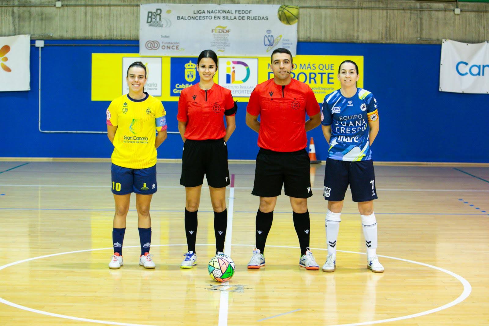 Árbitros: Gara Rodríguez y Abraham Rodríguez, del Colegio de Las Palmas, auxiliados por Jorge Juan. Amonestaron por las locales a y por las visitantes a Sara, Garibo.