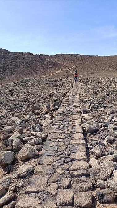 Cierto es que el GR-131 oficial -del que no faltarán postes indicativos en todo el periplo, identificándolo con la pintura de dos franjas paralelas: blanca arriba, roja debajo-, reconocido como Camino Natural de Corralejo a Punta de Jandía, busca la comodidad del trayecto, su fácil accesibilidad y para ello huye de pendientes acusadas y terrenos inestables. Su objetivo no es otro que hacerlo asequible y seguro para la mayoría de la población.