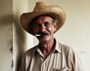 Solo hizo falta que se diera el golpe para que la carcajada sonara a mi espalda. Me giré, y ahí estaba, con las manos en los bolsillos. En pie, con la piel de cara y brazos quemada por el sol, una vieja camisa sudada, y unos pantalones de pinzas manchados de la mierda de las vacas. Los zapatos llenos de tierra, el sombrero de paja a medio lado. Y un mecánico blanco, a medio fumar, mantenido entre esos labios protegidos por su fino bigote.