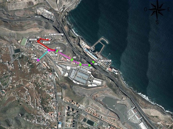 Se trata de una instalación en la que la entidad tiene previsto invertir 1.198.775,00 euros para contruir un nuevo tramo de línea con una longitud total de 670 metros, de los cuales 115 serán de tendido aéreo y 555 de subterráneo, que partirá del actual apoyo T6 hasta El Sabinal. Red Eléctrica tiene previsto desmantelar los circuitos Jinámar-Telde y Jinámar-Marzagán desde la subestación de Jinámar hasta el apoyo T6 de la línea aérea de 66kv.
